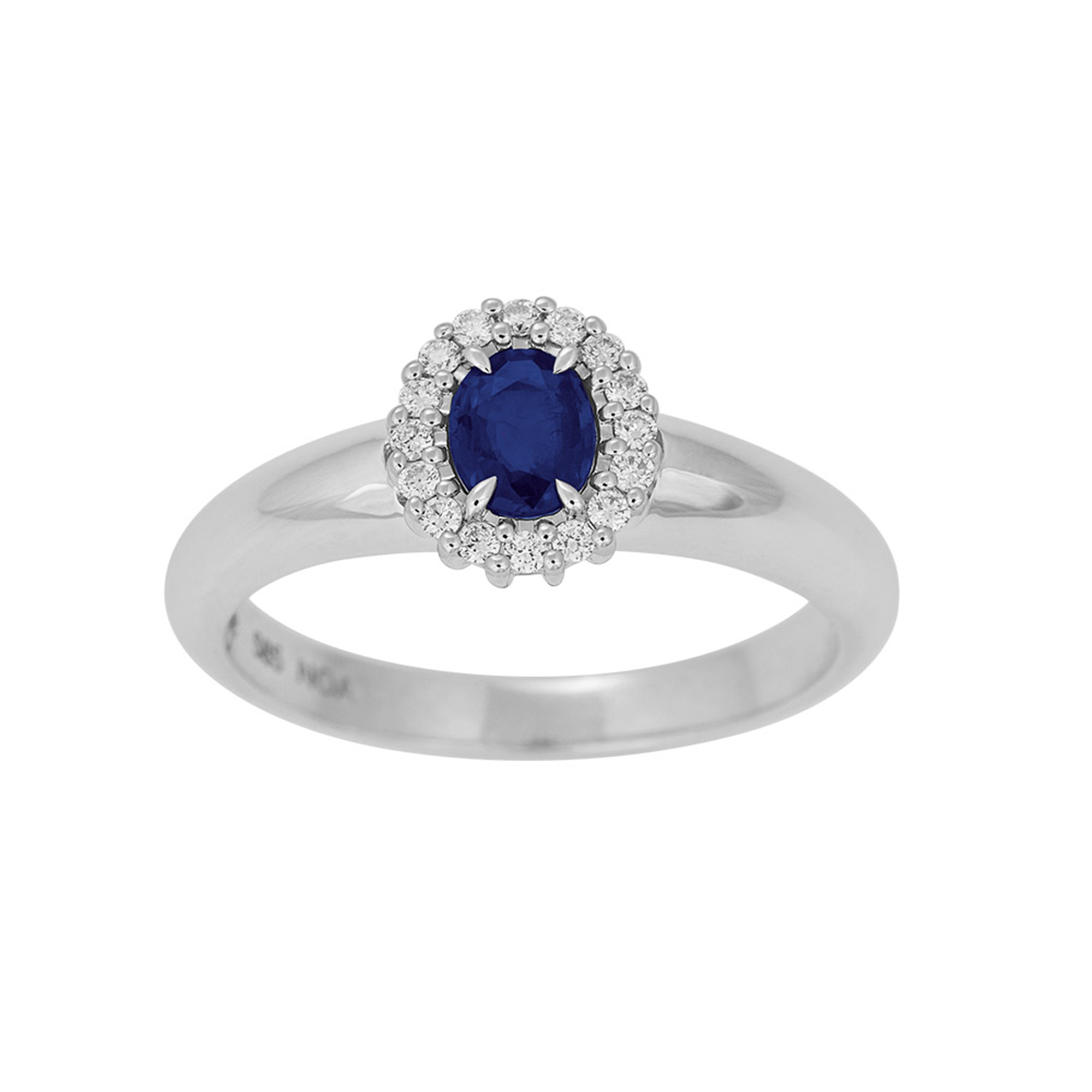 14 kt. guldring m/safir og dia 0.11ct W/SI, von Siersbøl