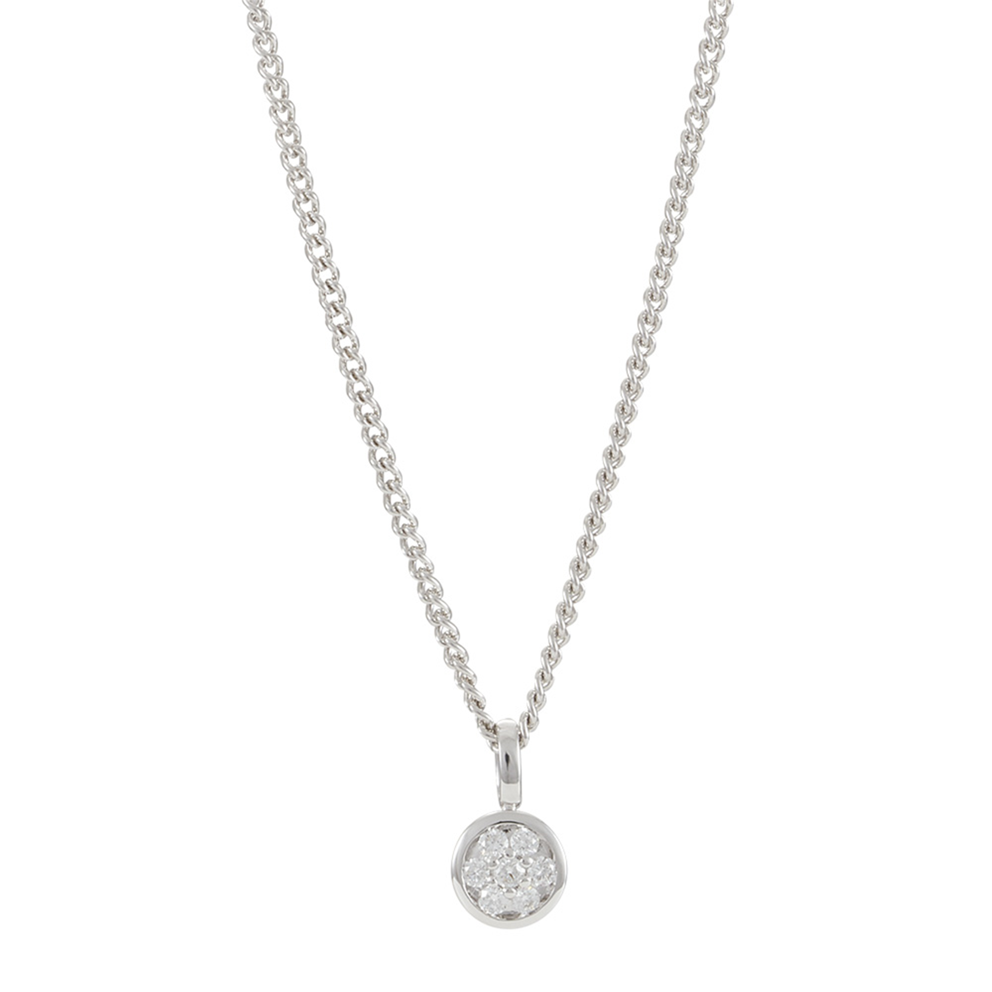 14 kt. hvg vedh cirkel 0,09ct W/SI m/ sølv kæde, von Siersbøl