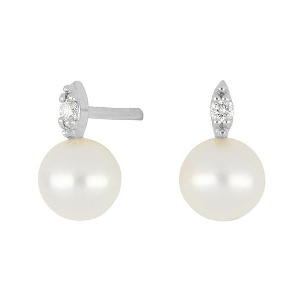 14 kt. hvidgulds ørestikker m/perle og dia. 0.044ct W/SI, von Siersbøl
