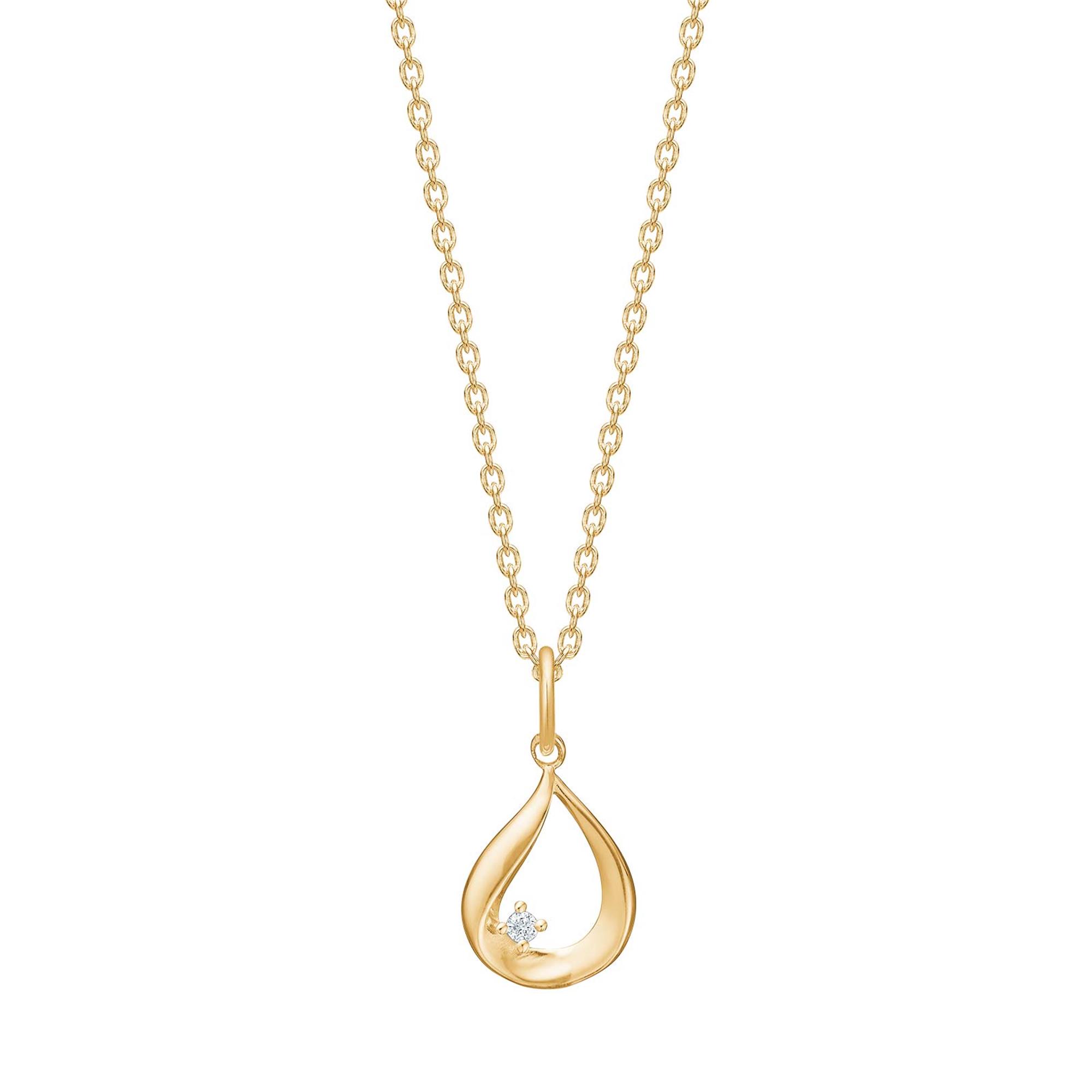 14kt. guld vedhæng m. 0,015ct W/SI inkl. forg. kæde, von Siersbøl