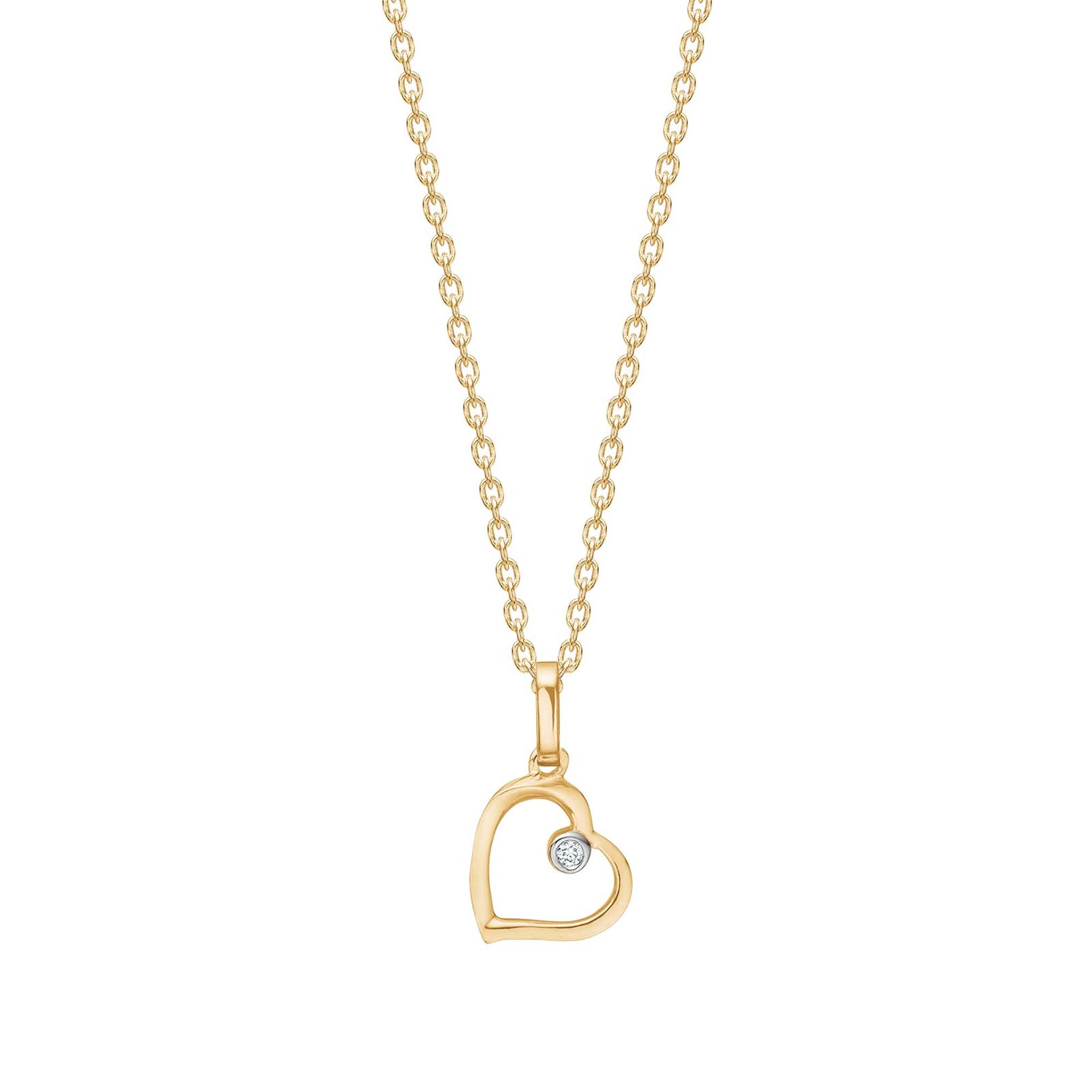 14kt. guldhjerte m/dia. 0,008ct W/SI inkl. forg. kæde, von Siersbøl