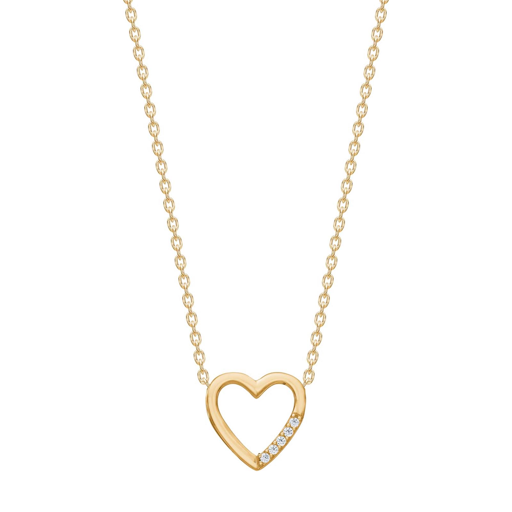 8kt. Guldvedhæng hjerte m.cz inkl. forg. kæde, von Siersbøl