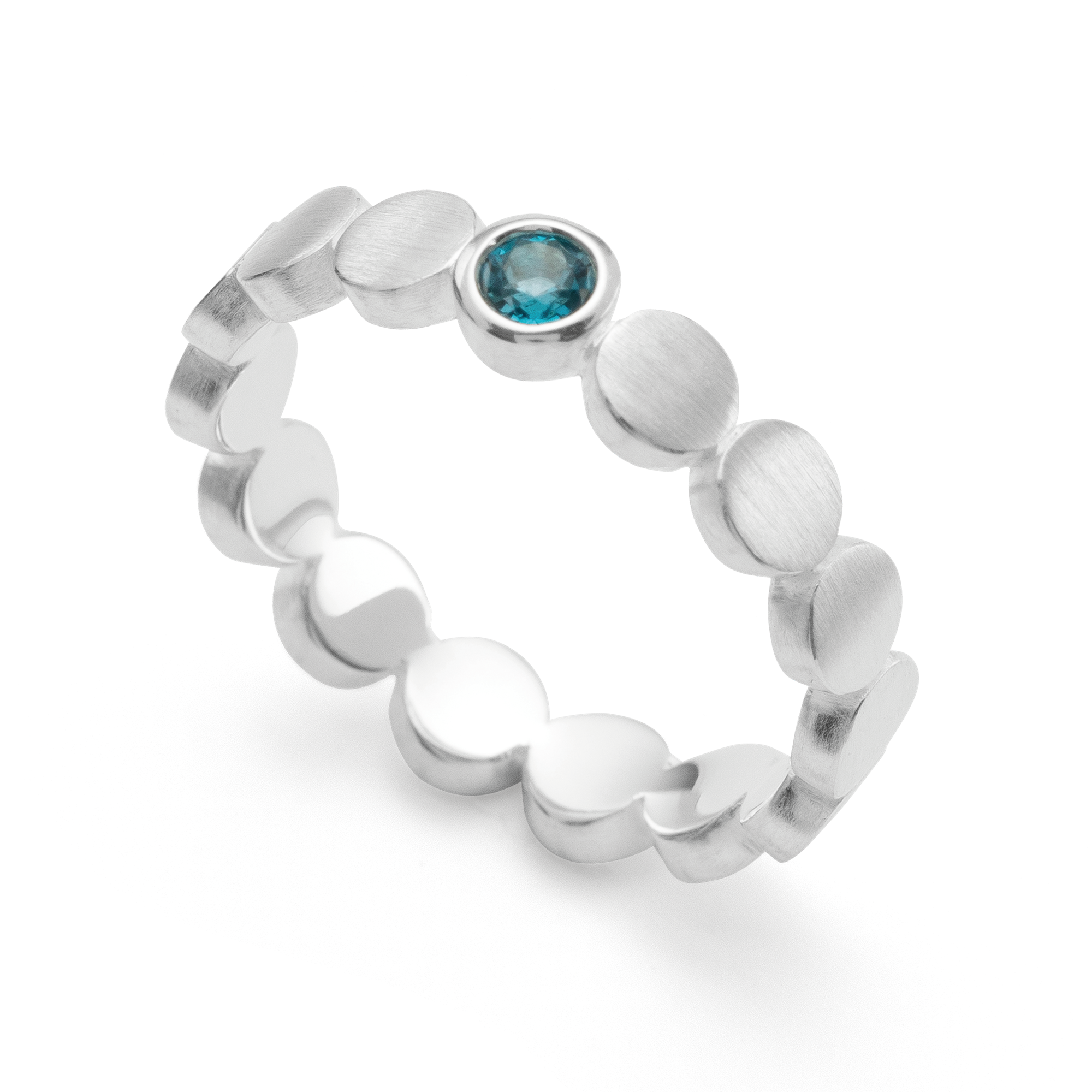 925/- ring, rho. mat/blank, blå topas 0,14ct, von Bastian Inverun