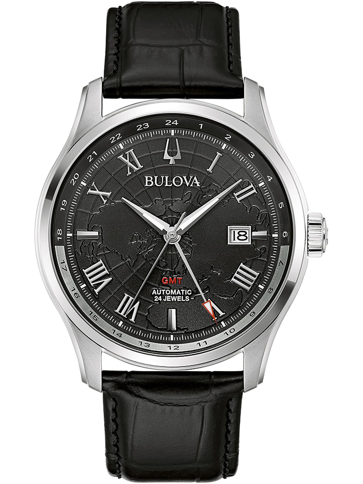 Diese GMT-Automatikuhr von Bulova vereint präzise Zeitmessung mit praktischer Funktionalität. Das hochwertige Automatikwerk mit 24 Juwelen sorgt für zuverlässige Ganggenauigkeit ohne Batteriewechsel. Die GMT-Funktion ermöglicht das Ablesen einer zweiten Zeitzone.