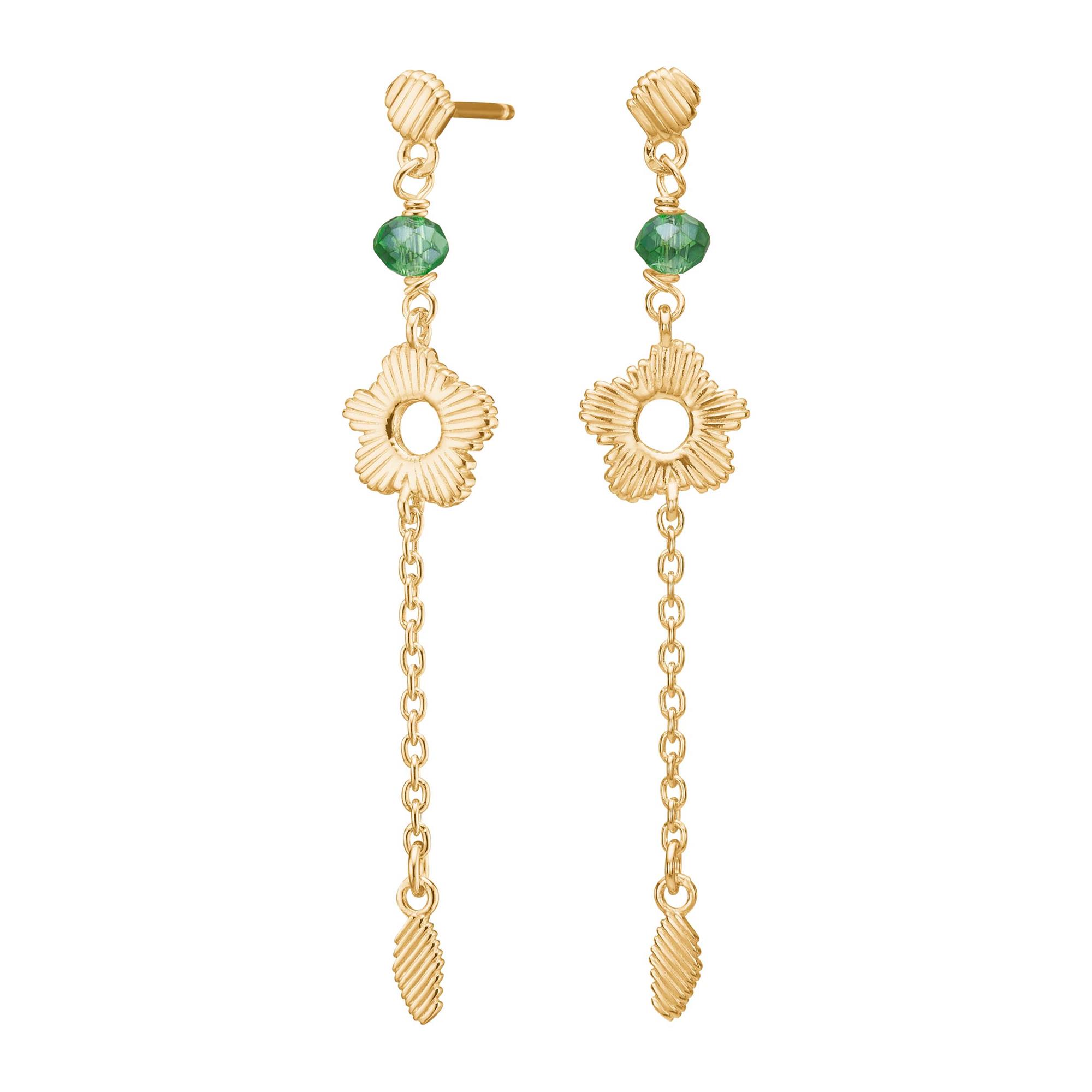 Forgyldt sølv ørehængere grøn blomst BRODERIE52, von Nordahl