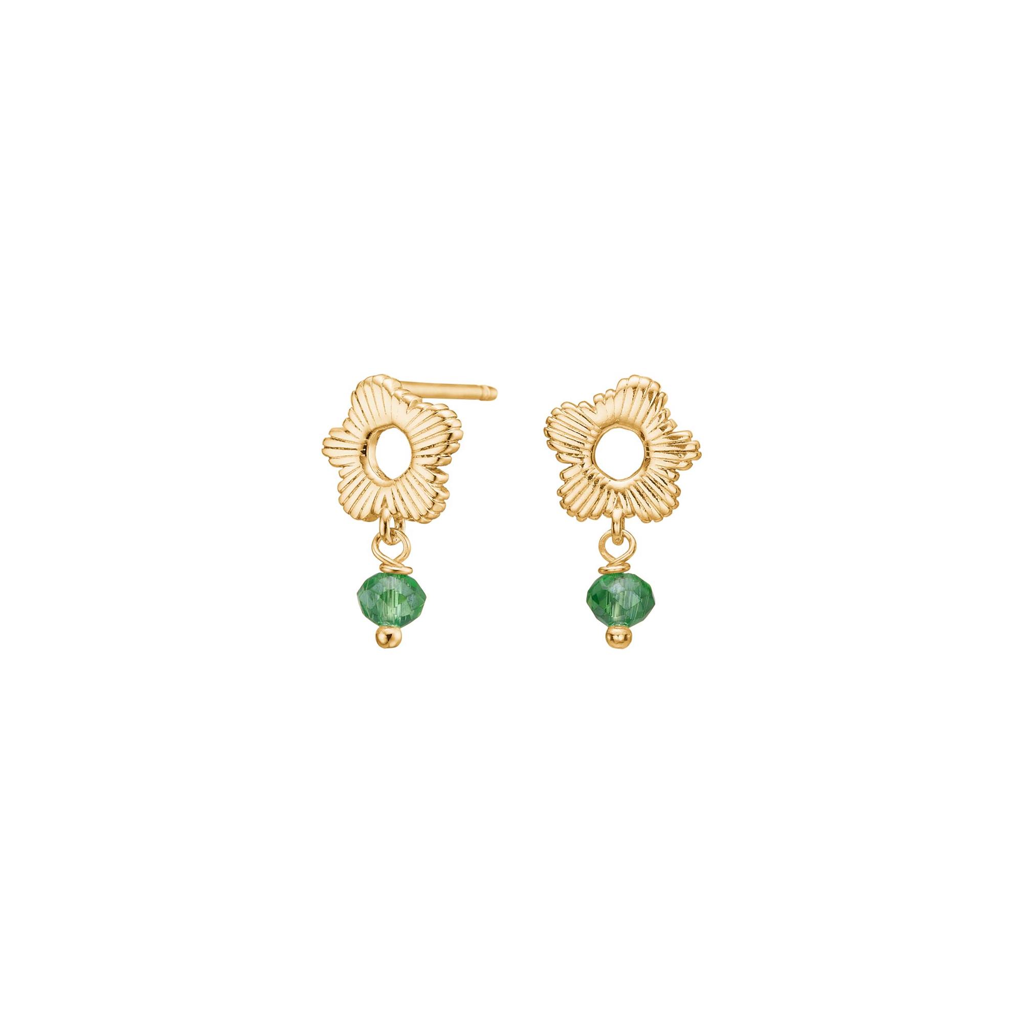 Forgyldt sølv ørestikker grøn blomst BRODERIE52, von Nordahl