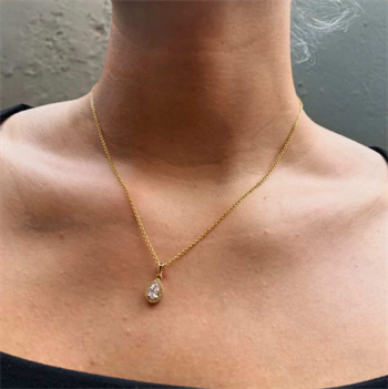Schöner und eleganter Tropfenanhänger aus 8 Karat Gold. Der Anhänger ist mit einem großen Zirkonia besetzt, der 18 kleine Zirkone enthält. Er wird mit einer 45 cm langen vergoldeten Kette von 7 mm x 10 mm geliefert.