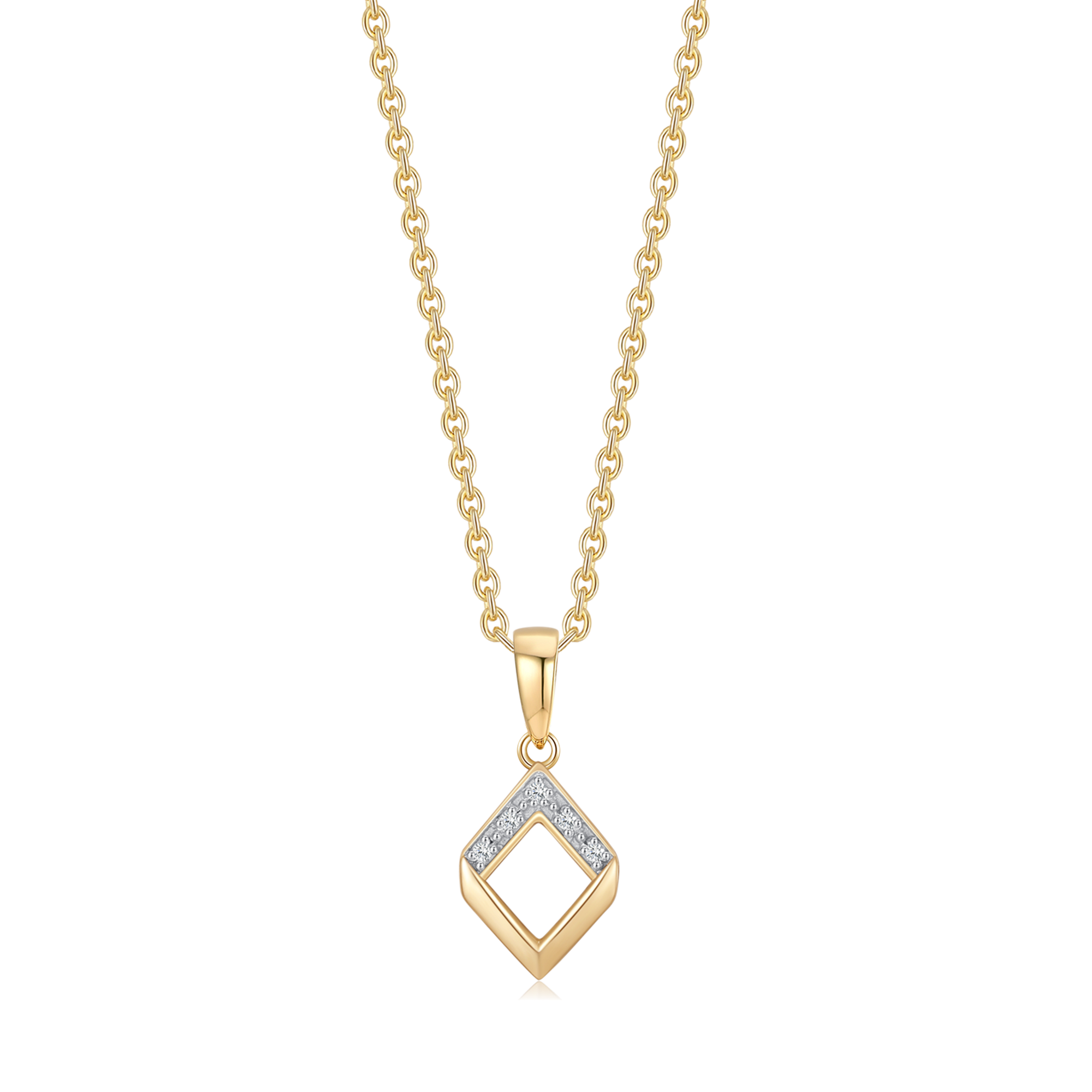 8 kt. guld vedhæng skæv firkant med syntetiske cubic zirconia.