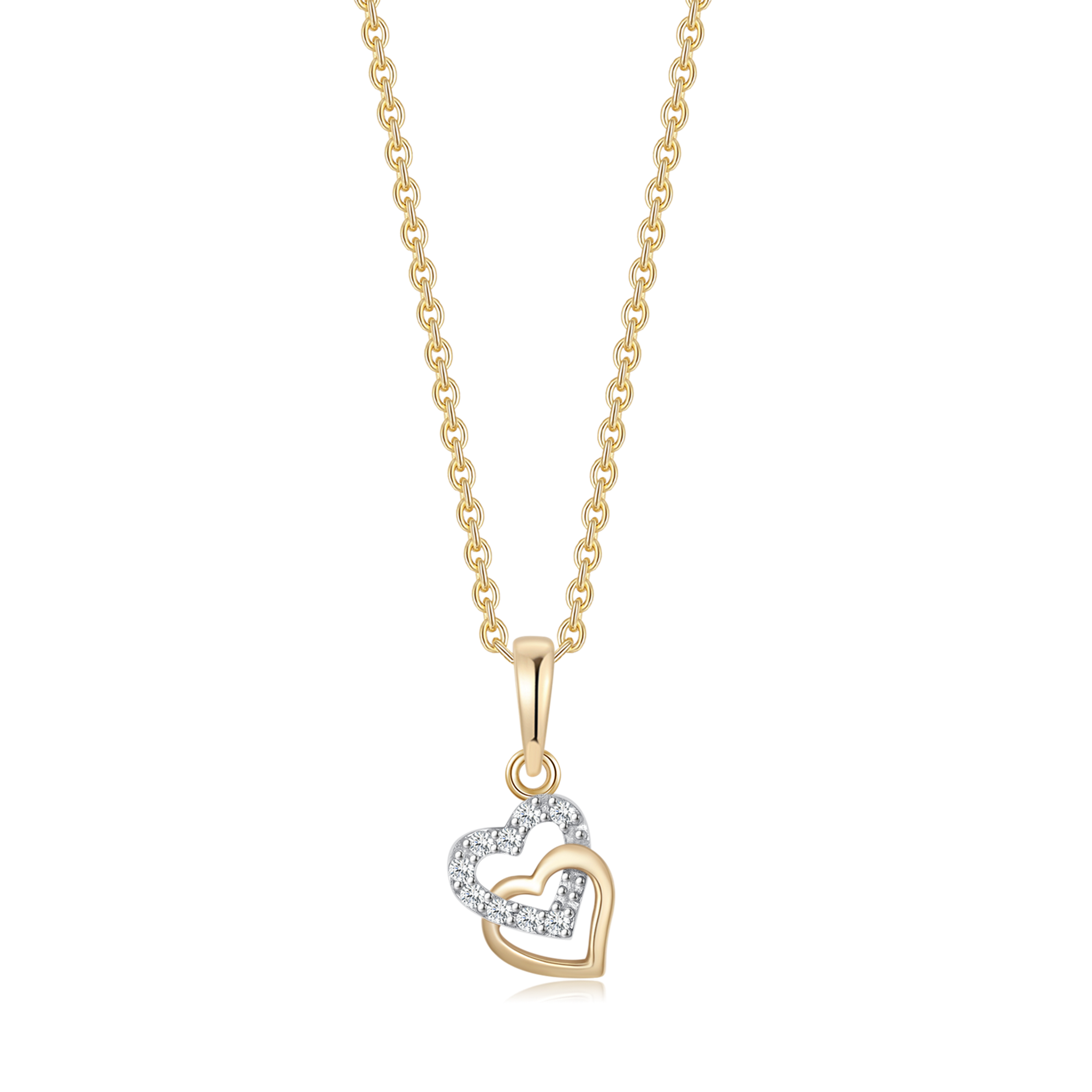 8 kt. guld vedhæng dobbelt hjerte med syntetiske cubic zirconia.
