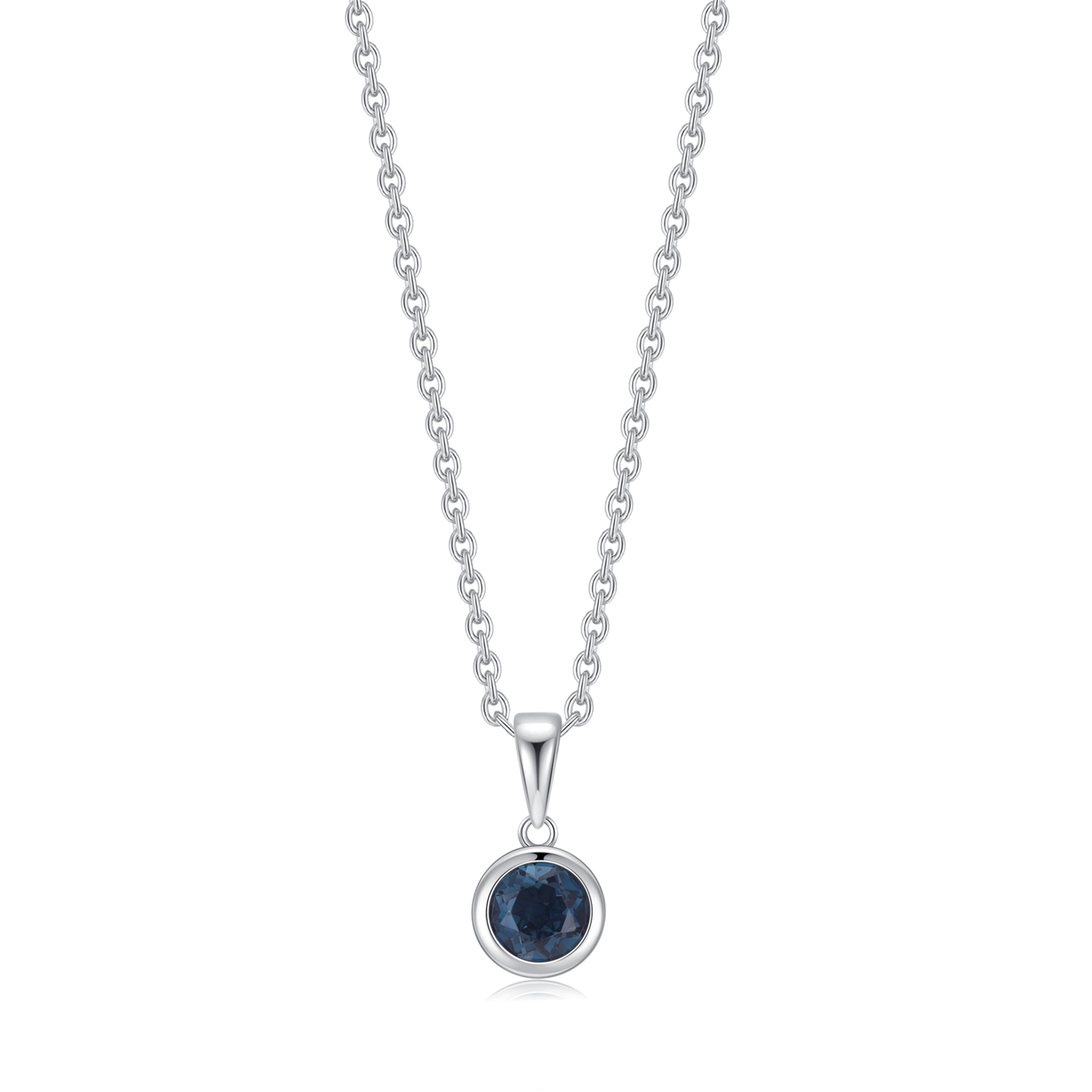 14 kt. hvidguld vedhæng cirkel med blå topas