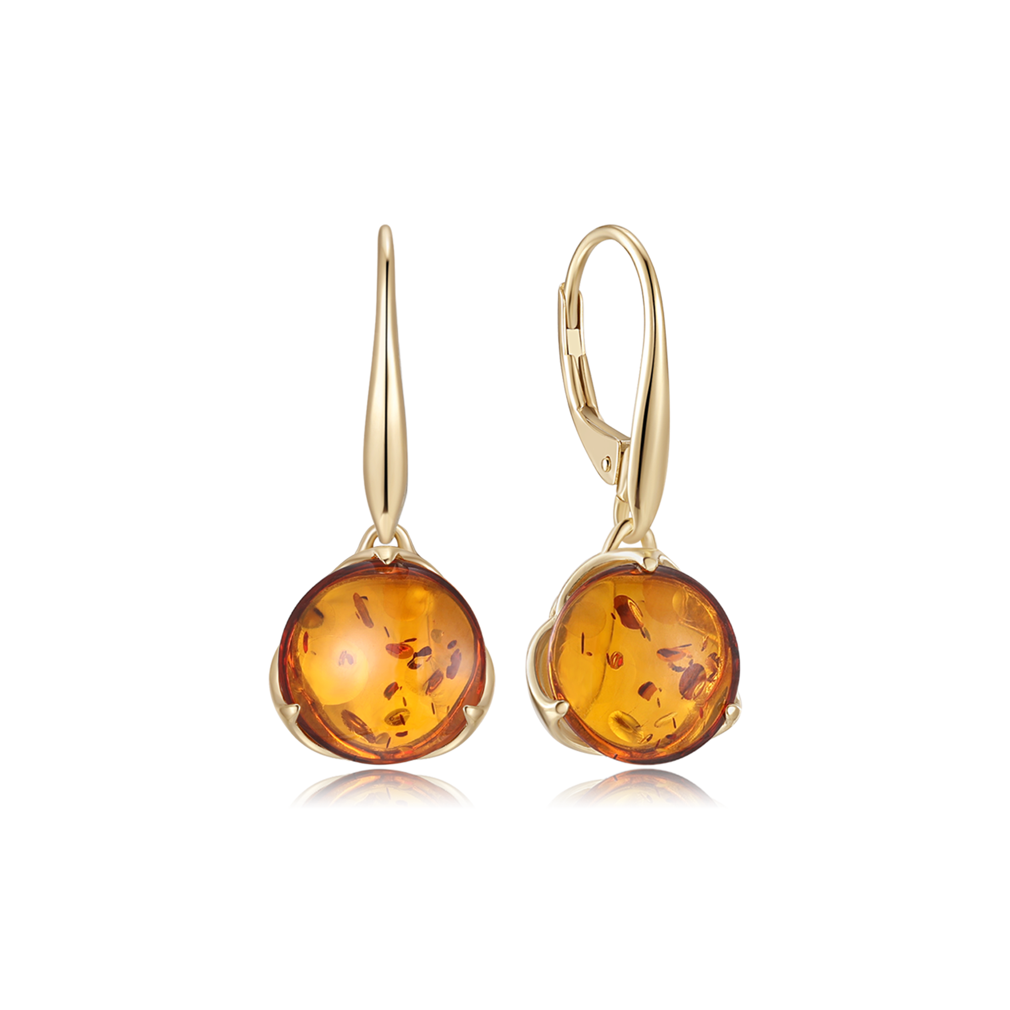 9 kt. guld ørehænger rund rav i fatning.
