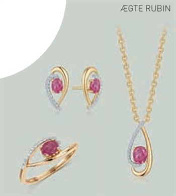 8 kt. guld ørestikker dråb med rubin og syntetiske cubic zirconia.