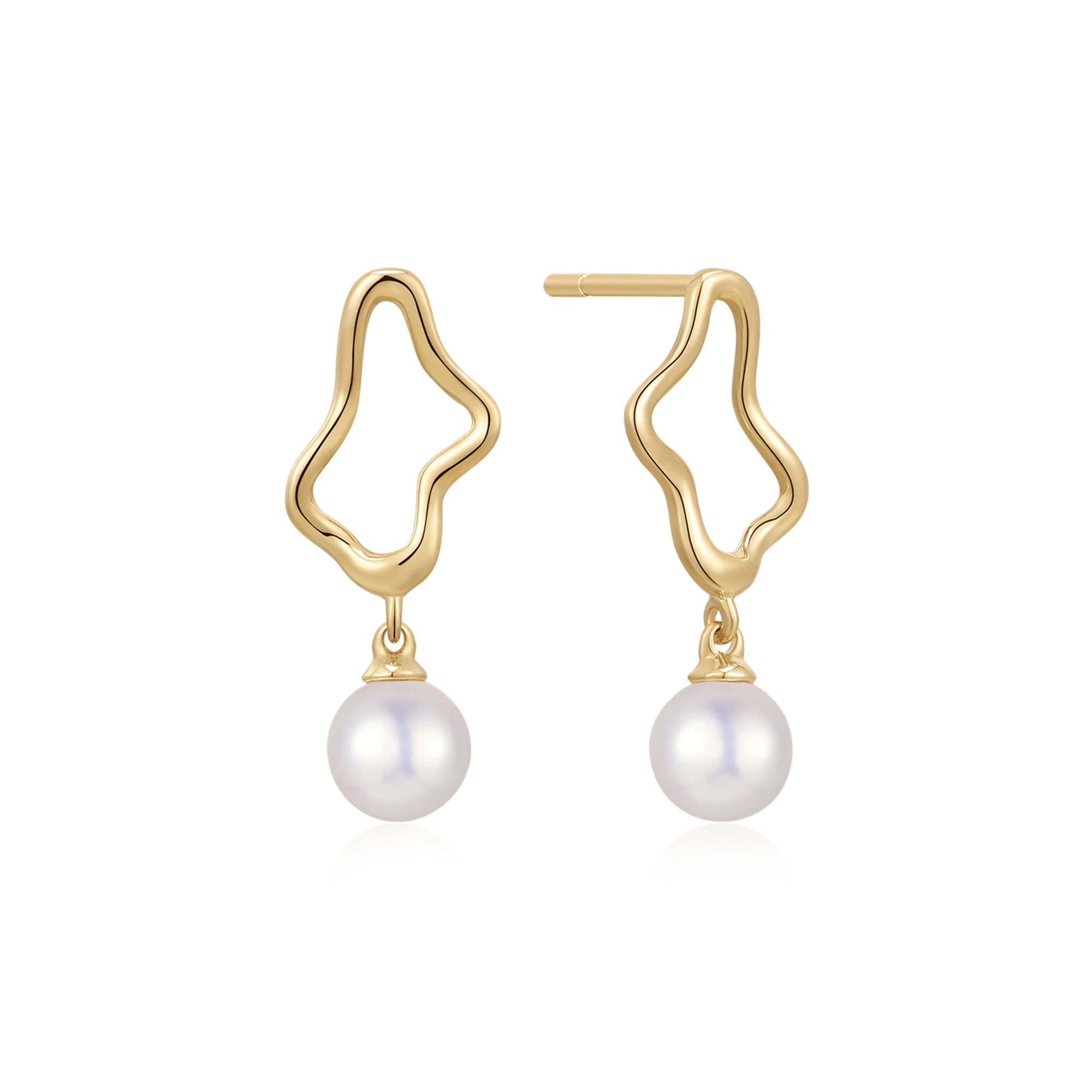 8 kt. guld ørestikker skæv oval med ferskvandsperle.