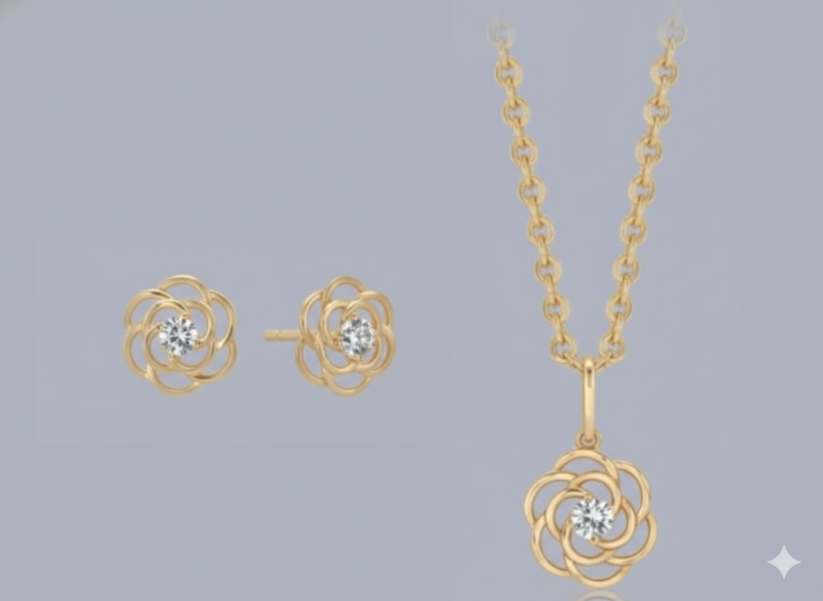 8 kt. guld ørestikker blomst med en syntetisk cubic zirconia.