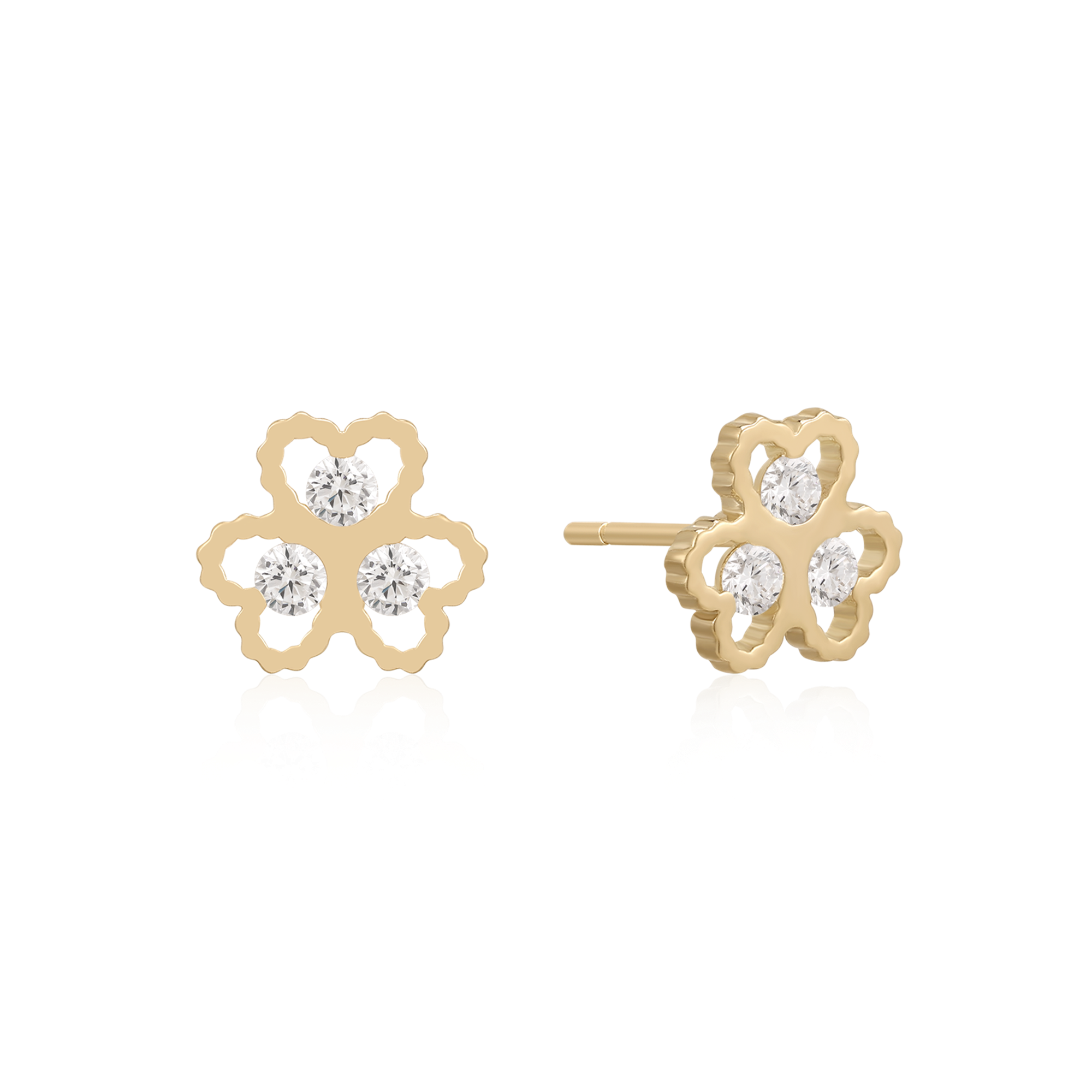 8 kt. guld ørestikker blomst af 3 hjerter med syntetiske cubic zirconia. "Flower of hearts"