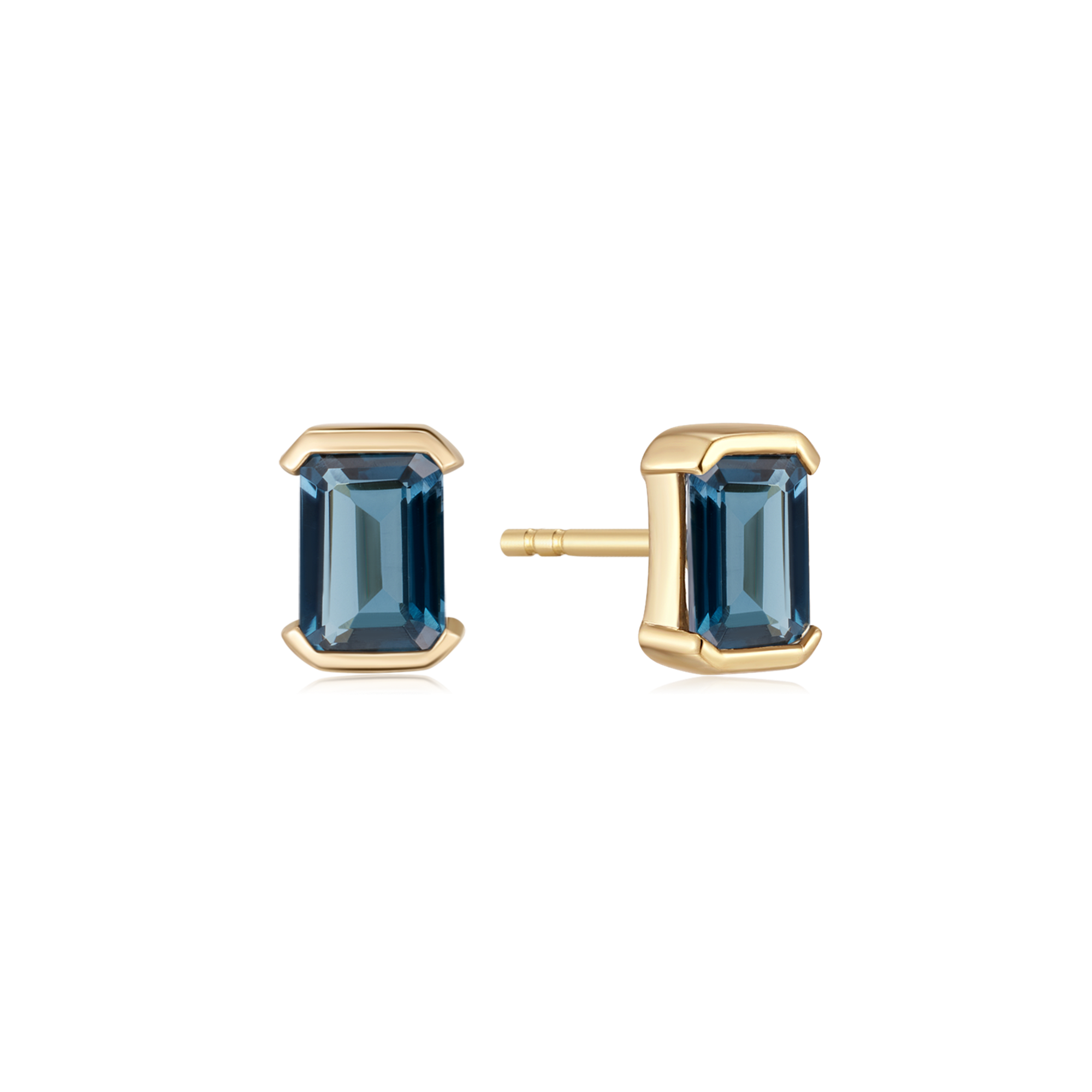 14 kt. guld ørestikker aflang firkant med london blå topas.