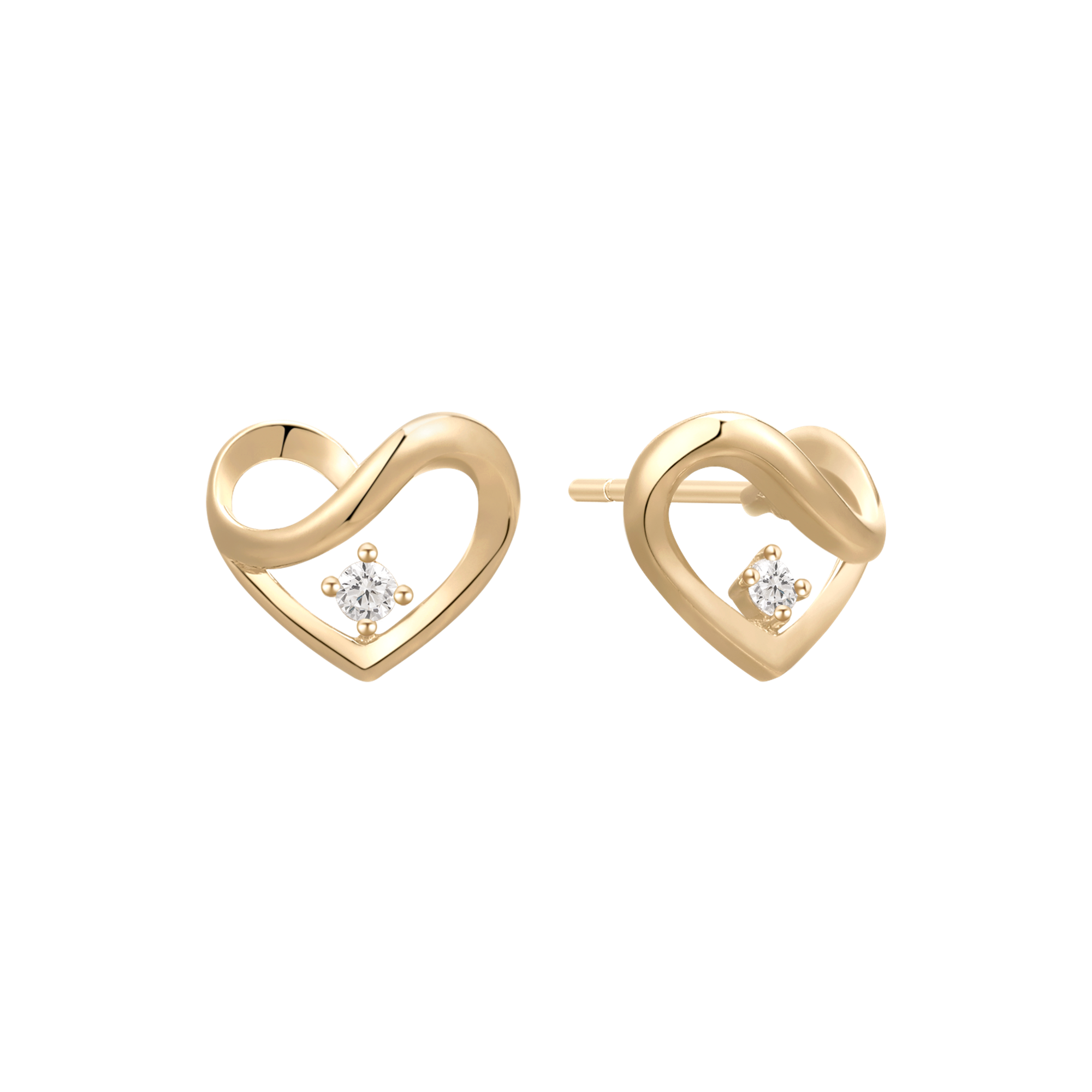 14 kt. guld ørestikker hjerte med evighedstegn og en syntetisk cubic zirconia.