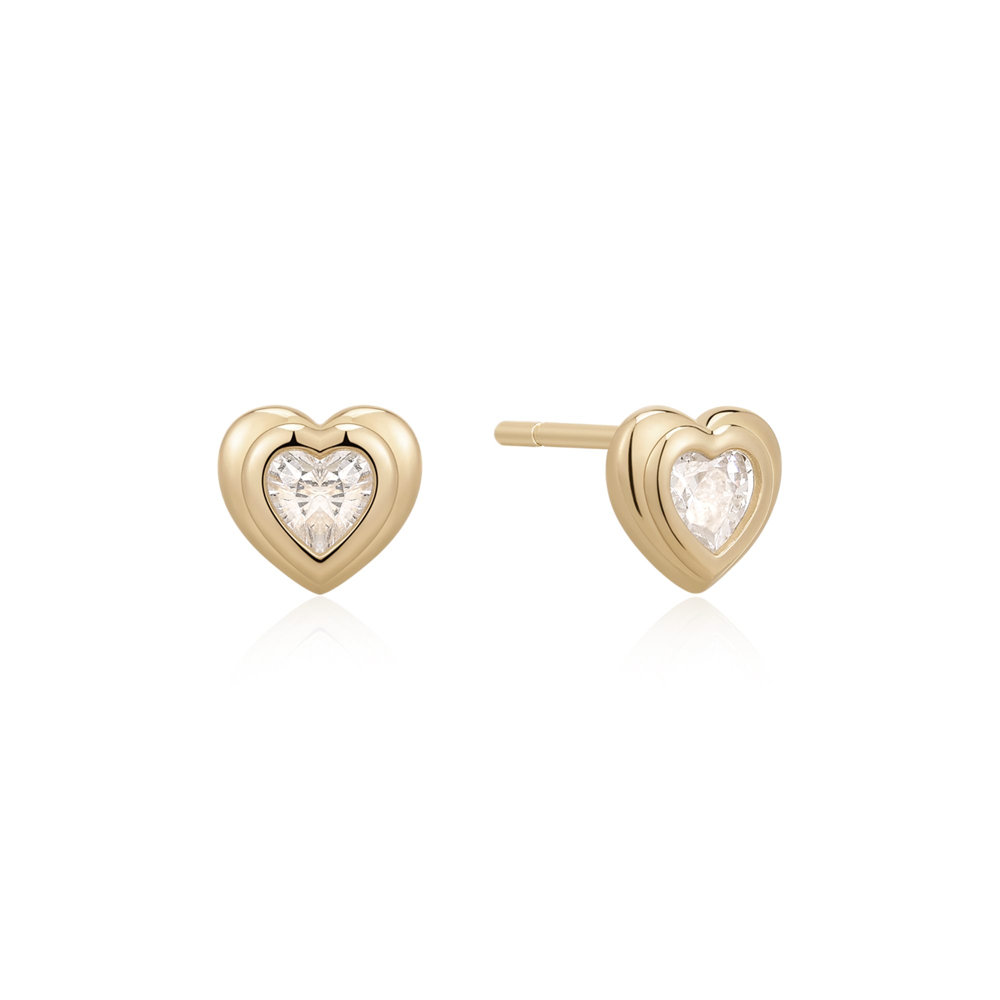 14 kt. guld ørestikker hjerte og en syntetisk cubic zirconia i midten.