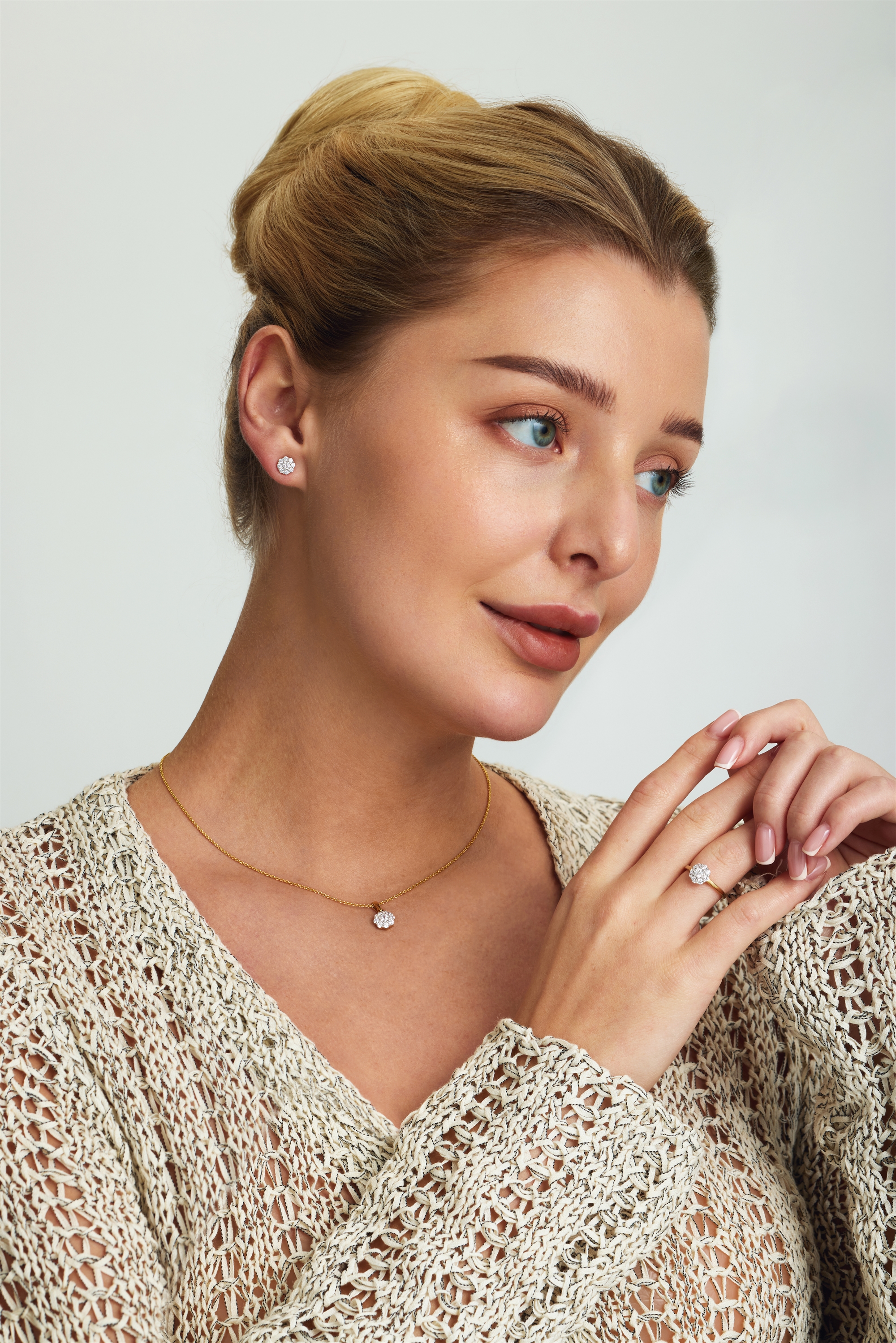 8 kt. guld ring blomst med syntetiske cubic zirconia.