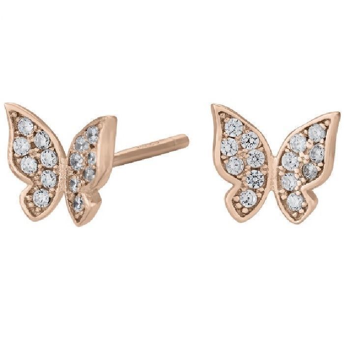 Schmetterlingsohrstecker mit 14 weißen Zirkoniasteinen