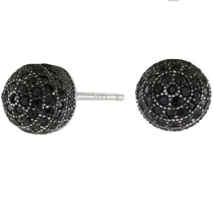 kugelförmige runde ohrstecker mit zirkonia schwarzem stein