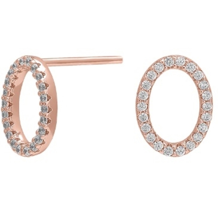 Schöne ovale Ohrstecker mit glitzernden weißen Zirkonia, 10 mm