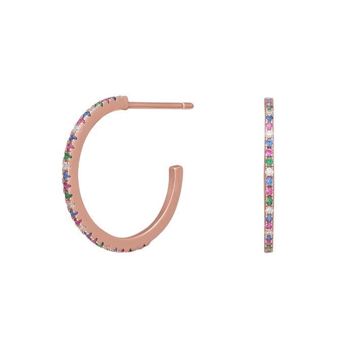 Schöne offene Creolen mit bunten Steinen, 18 mm Durchmesser