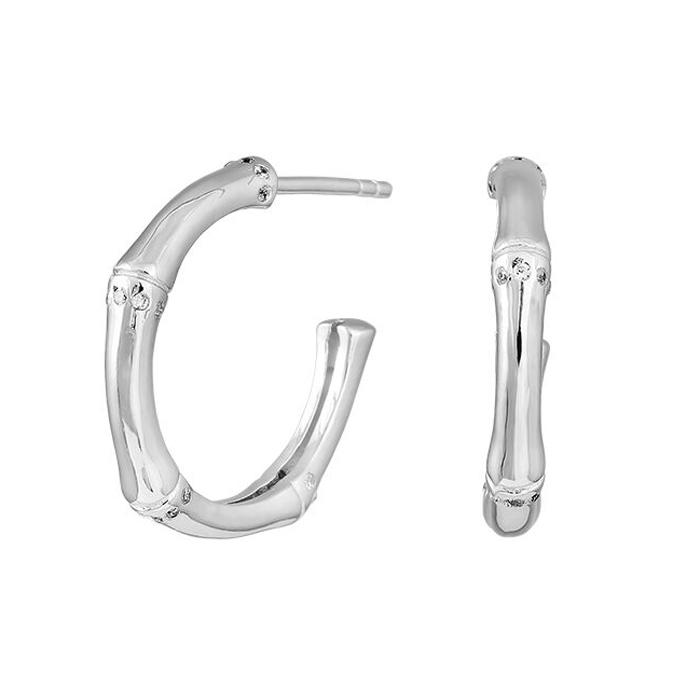 Feinsilberohrringe mit offenem Design, bestehen aus vier bambusförmigen Stäben und viel weißem Zirkonia, Durchmesser 19 mm