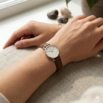 Die Daniel Wellington DW00100552 ist eine elegante Damenuhr im minimalistischen Stil. Das vergoldete Edelstahlgehäuse, das weiße Zifferblatt und das braune Lederarmband sorgen für ein zeitloses und stilvolles Erscheinungsbild.