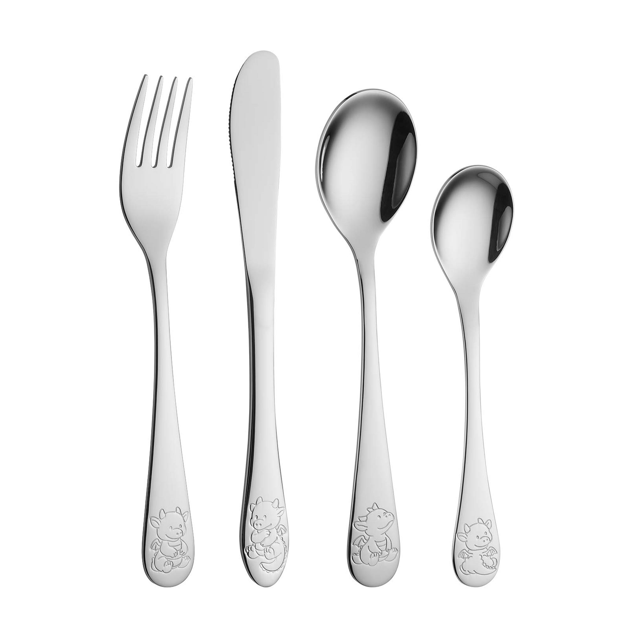 Rustfrit stål bestik m. drage inkl. bamse, von Noa Kids