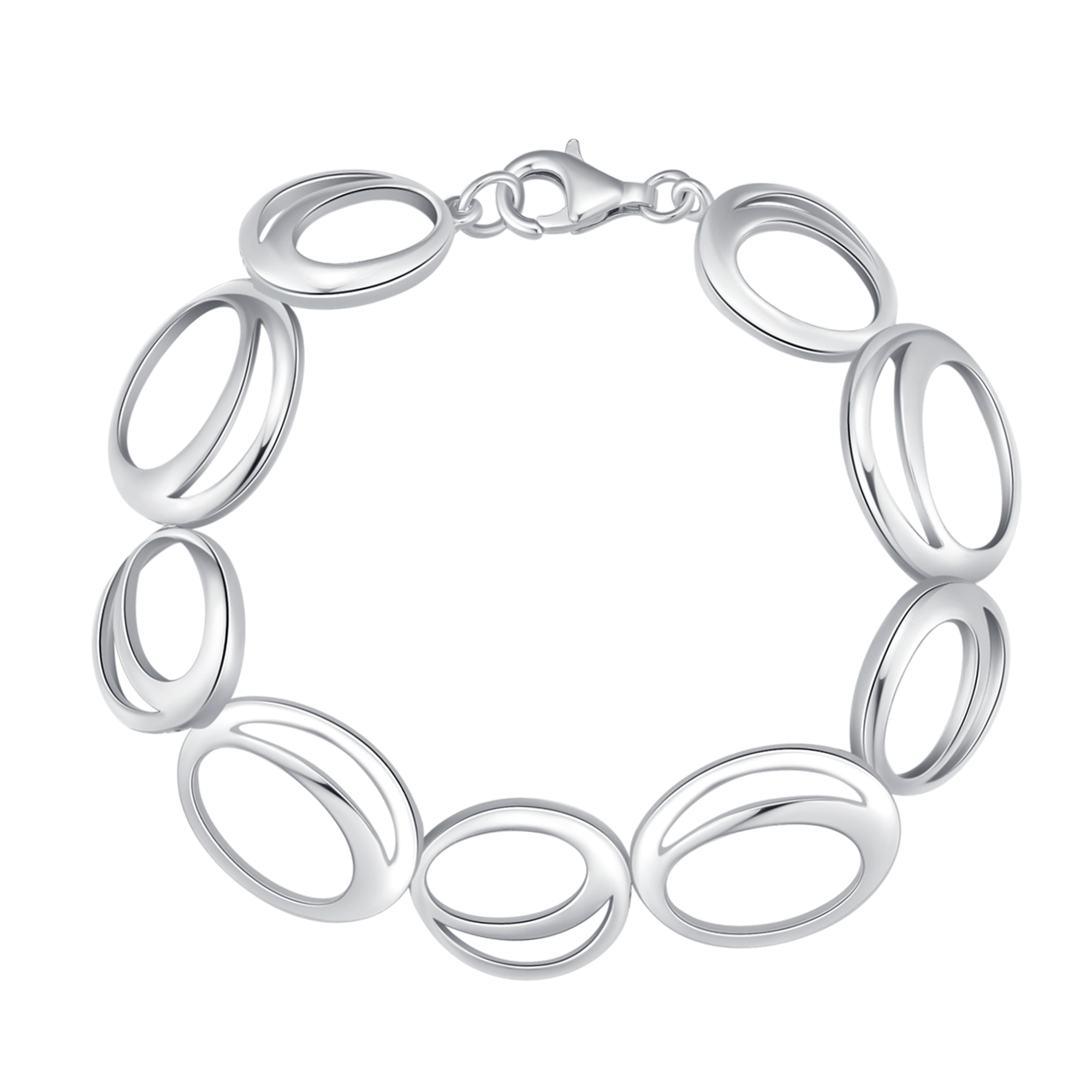 Sølv armbånd rhodineret dobbelt oval stor og lille skiftvis.