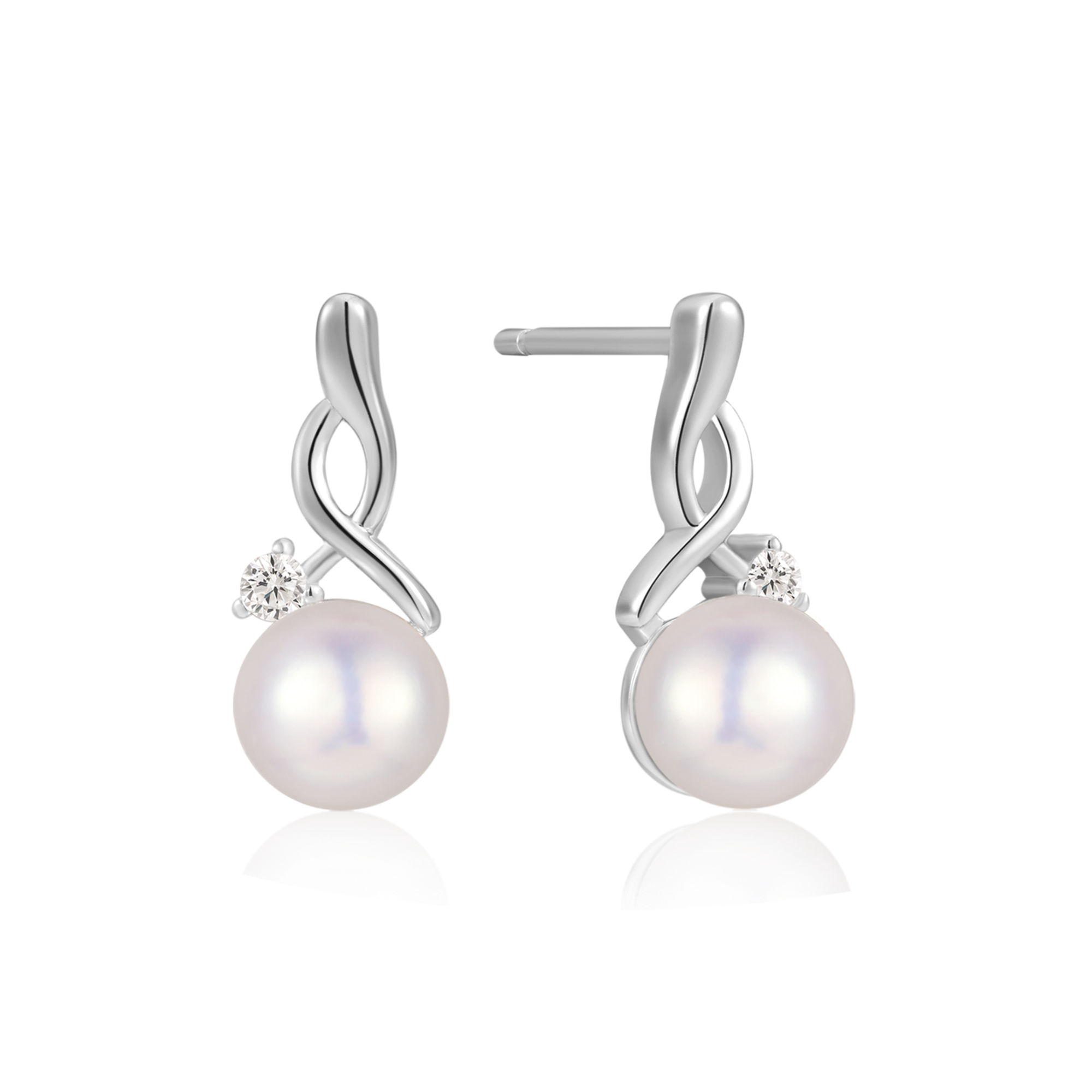 Sølv knækcreoler rhodineret evighedstegn med ferskvandsperle og syntetiske cubic zircornia.