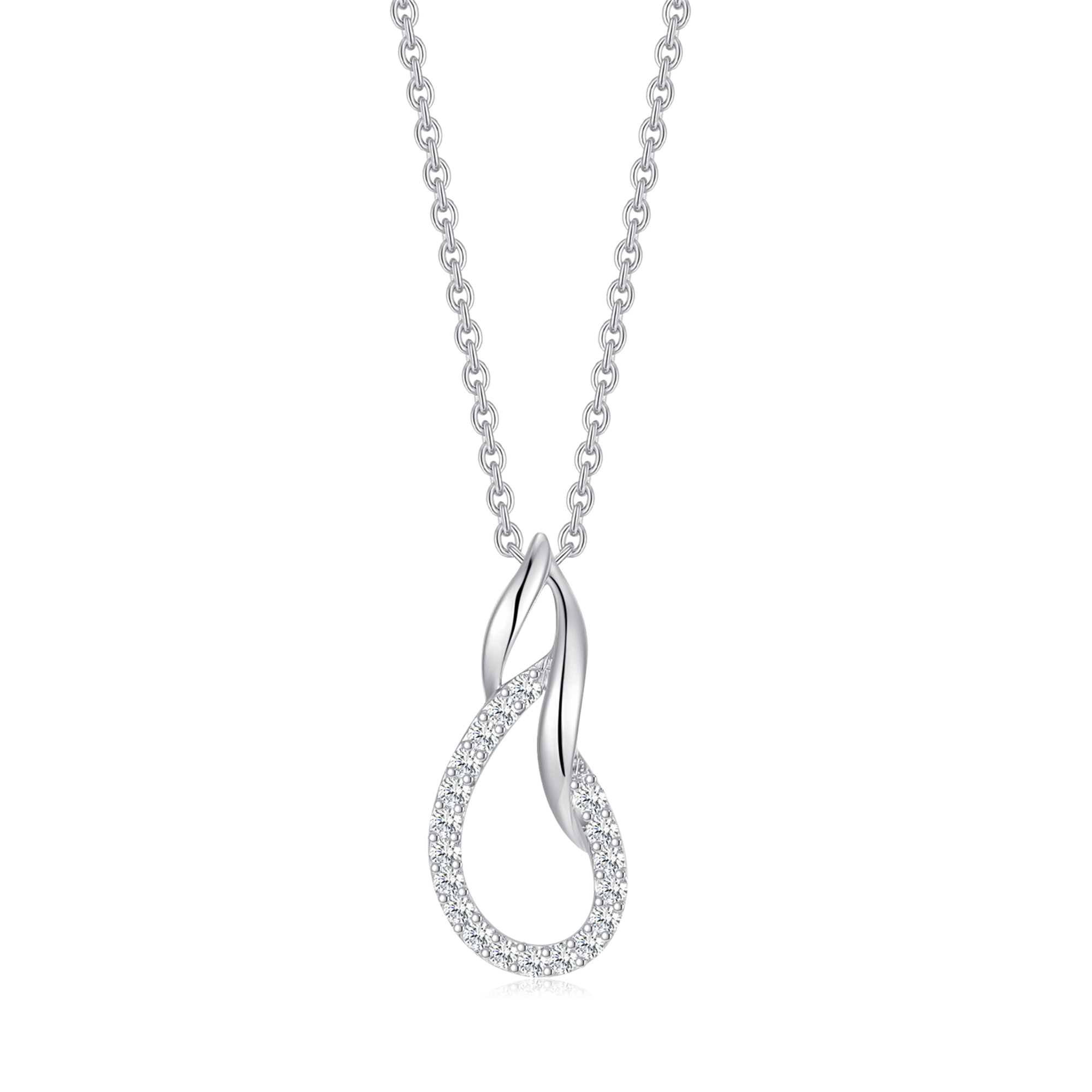 Sølv halskæde rhodineret flettet dråbe med syntetiske cubic zirconia.