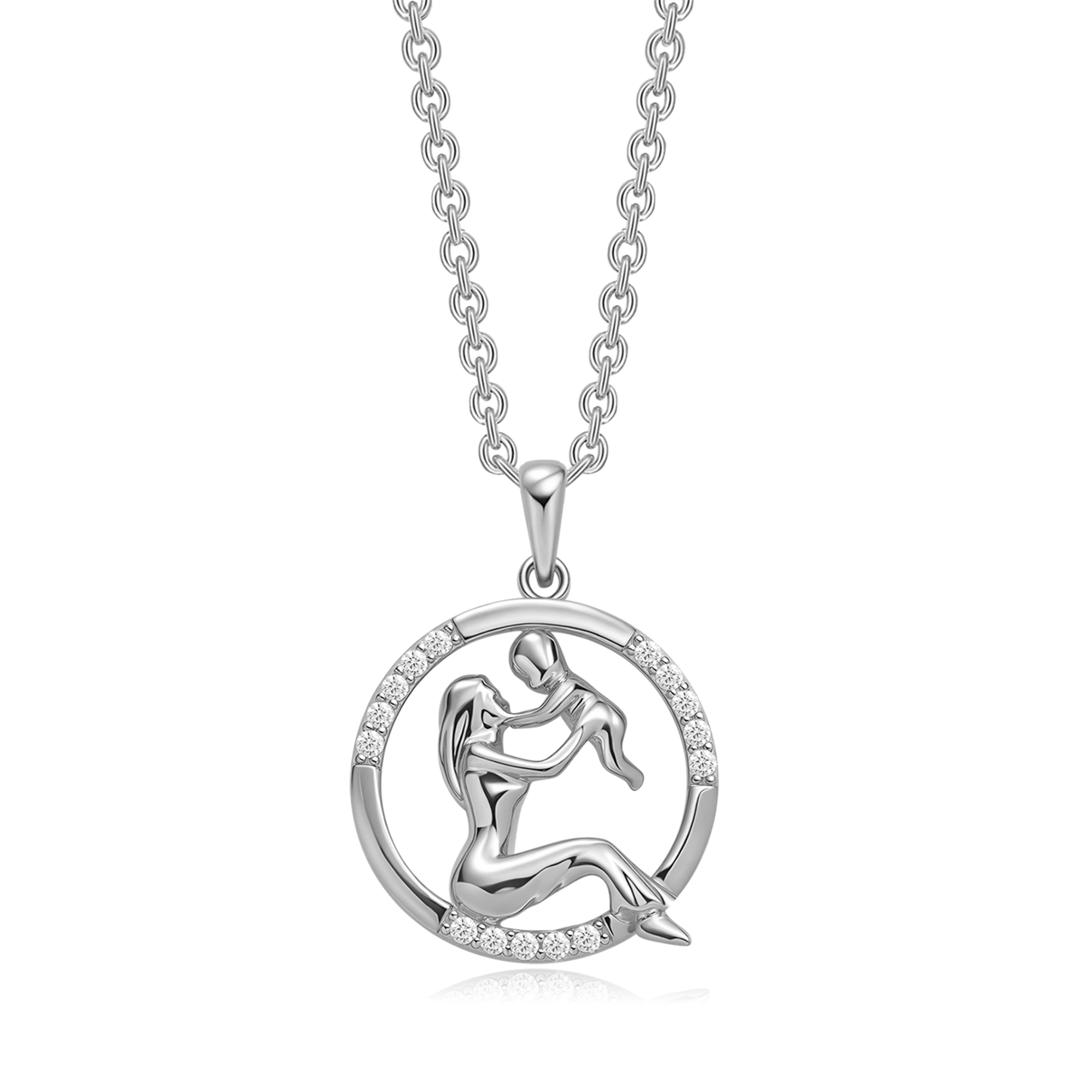 Sølv halskæde rhodineret cirkel med mor og barn med syntetiske cubic zirconia. "Mor og barn"