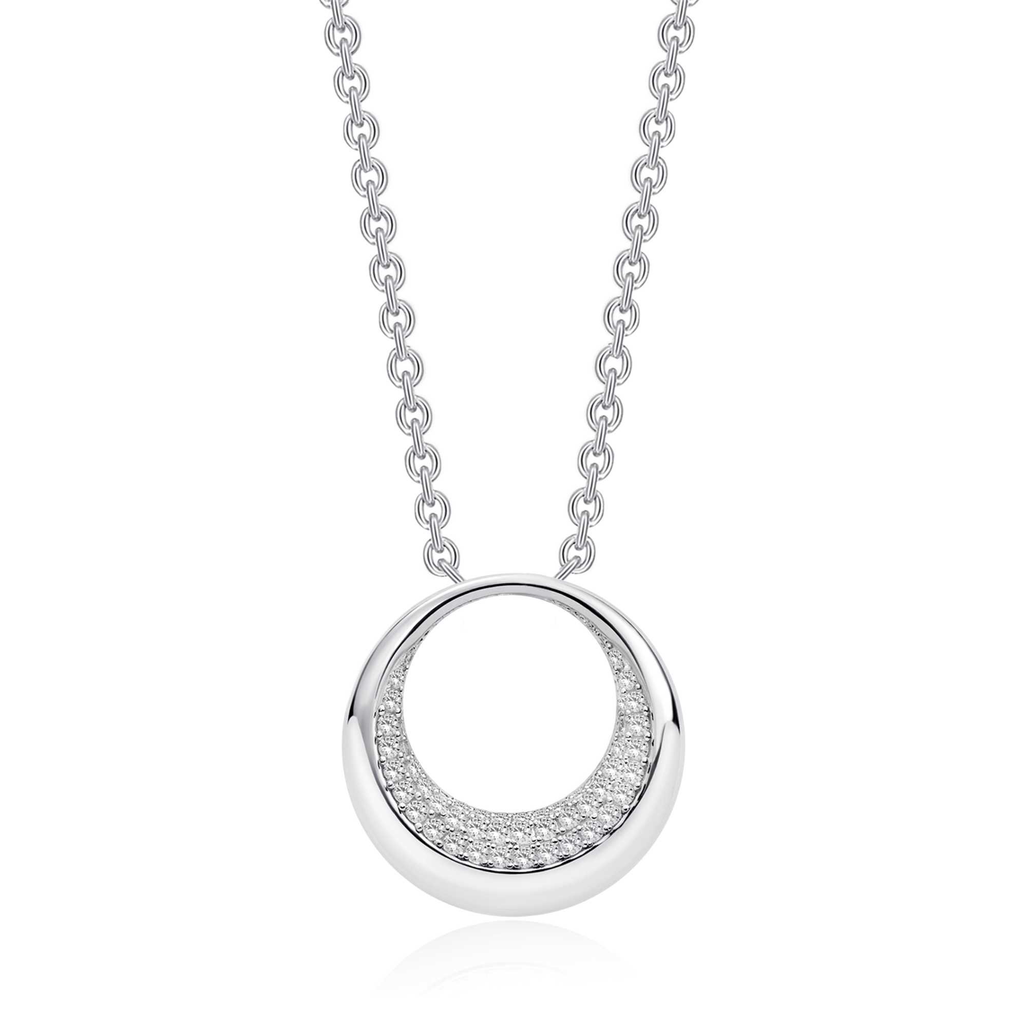 Sølv halskæde rhodineret cirkel med syntetiske cubic zirconia.