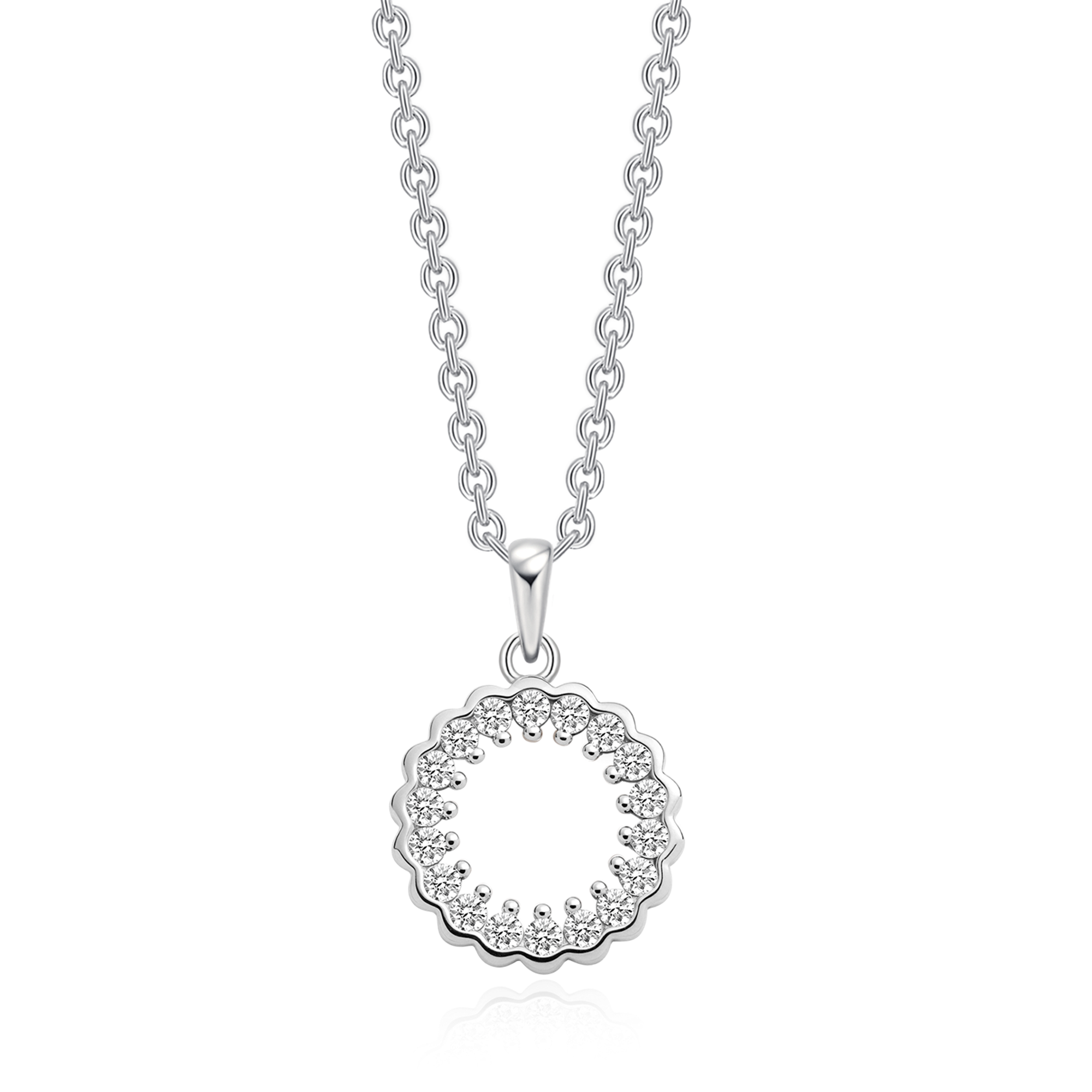 Sølv halskæde rhodineret cirkel med syntetiske cubic zirconia.