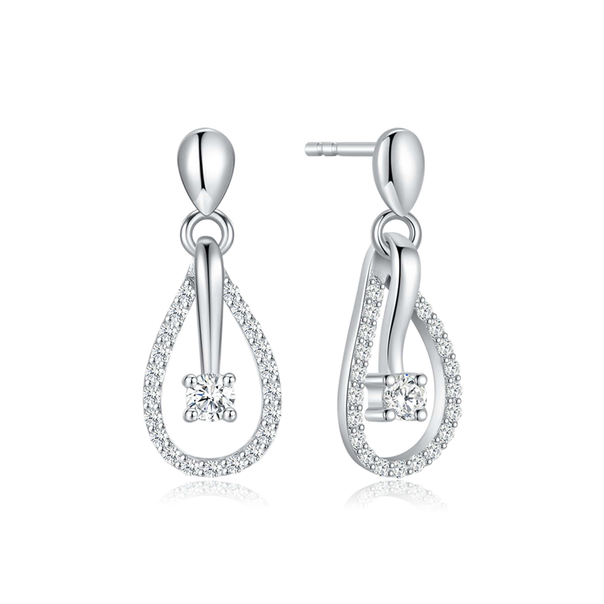Sølv ørehænger rhodineret dråbe med en syntetisk cubic zirconia i midten og kanten.