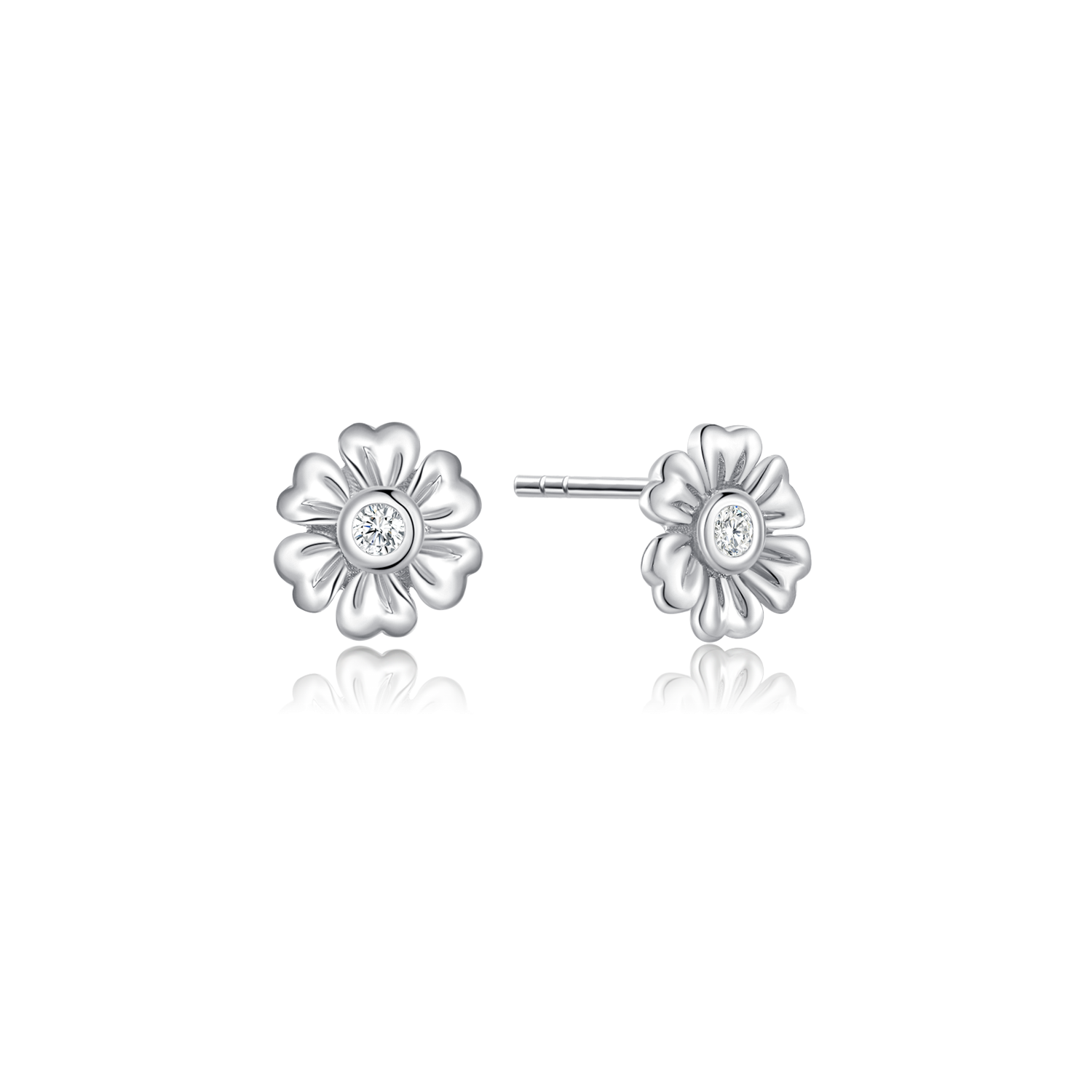 Sølv ørestikker rhodineret blomst med syntetisk cubic zirconia i midten.