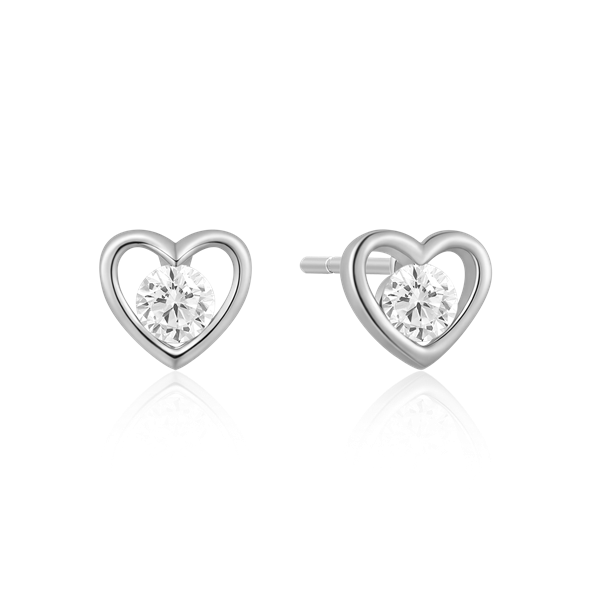 Sølv ørestikker rhodinere hjerte med en syntetisk cubic zirconia.