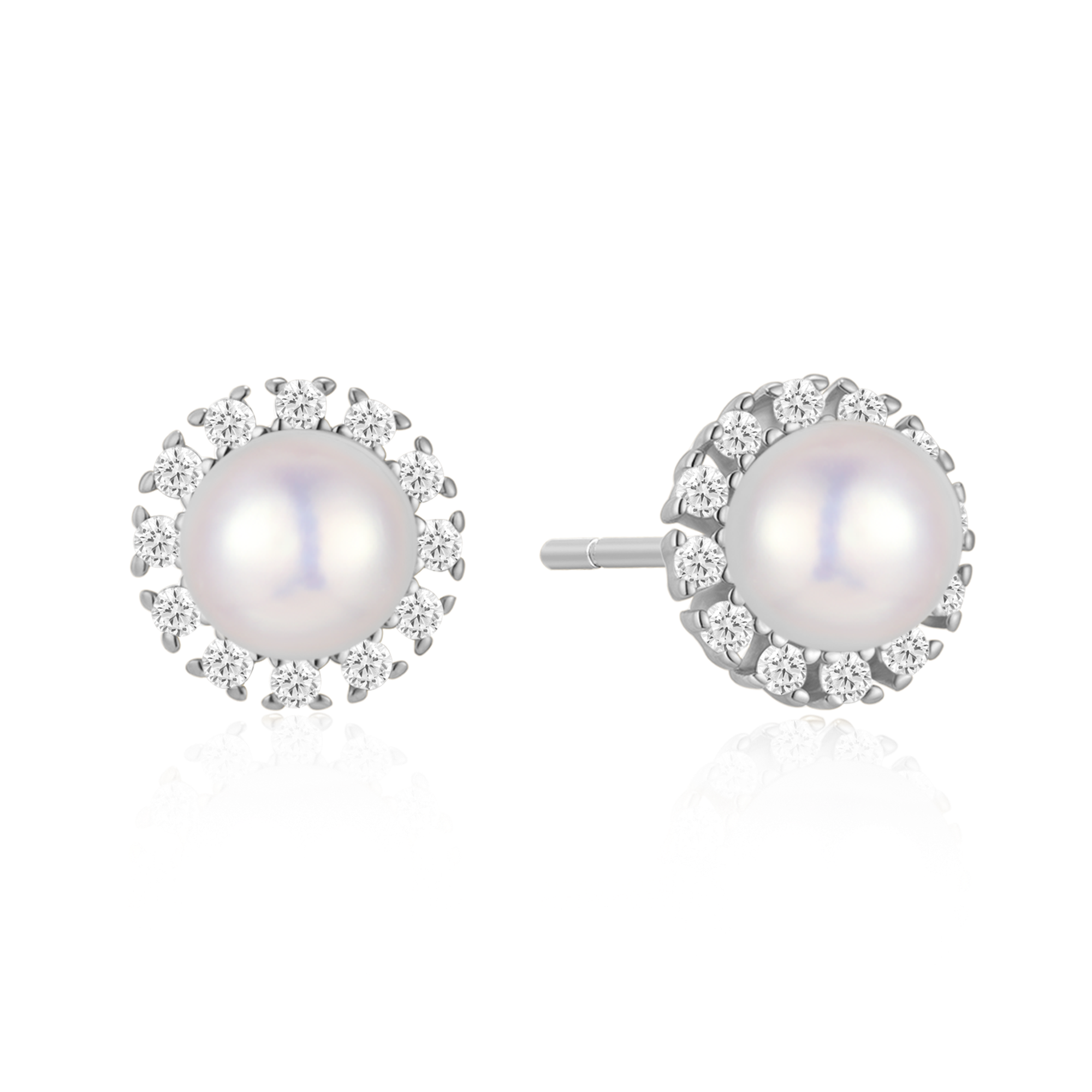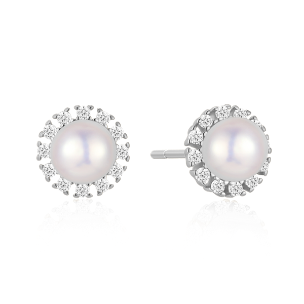 Sølv ørestikker rhodiner cirkel med en ferskvandsperle og syntetiske cubic zirconia.