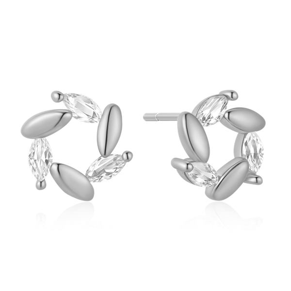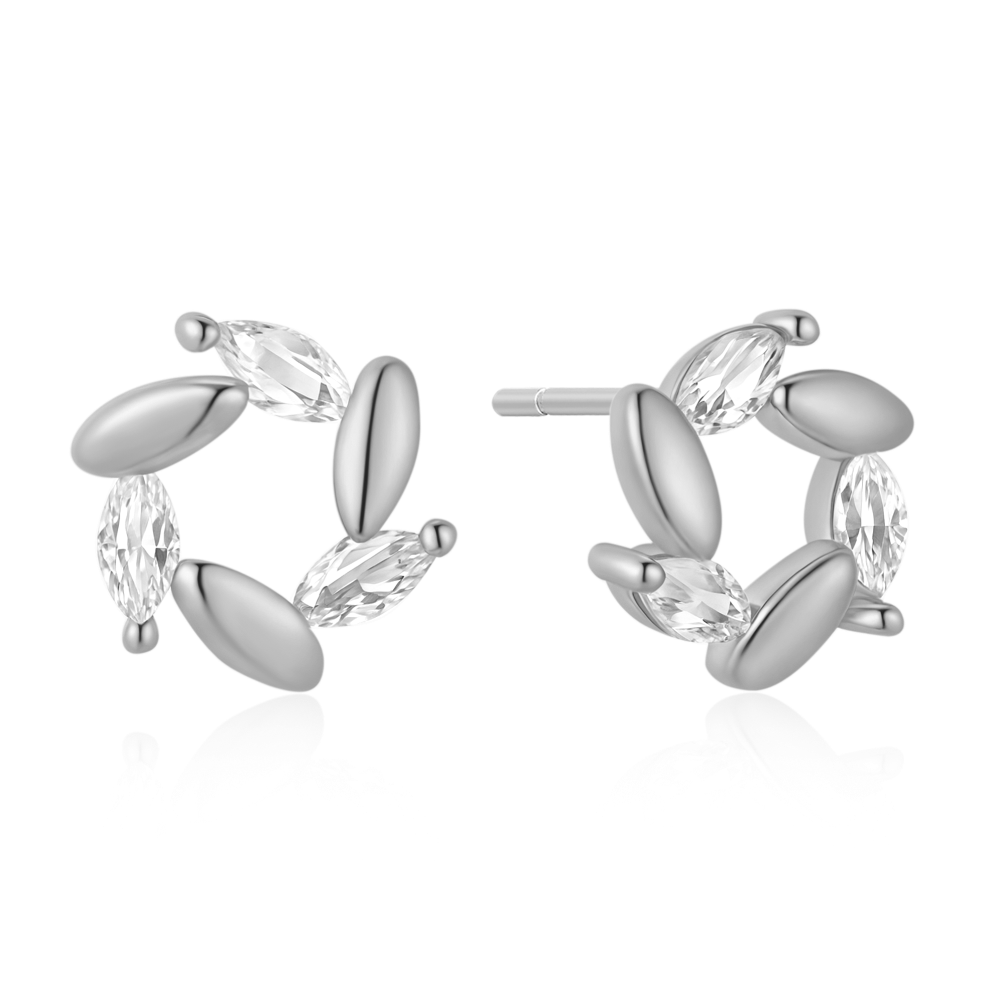 Sølv ørestikker rhodiner små ovale i cirkel med syntetiske cubic zirconia.