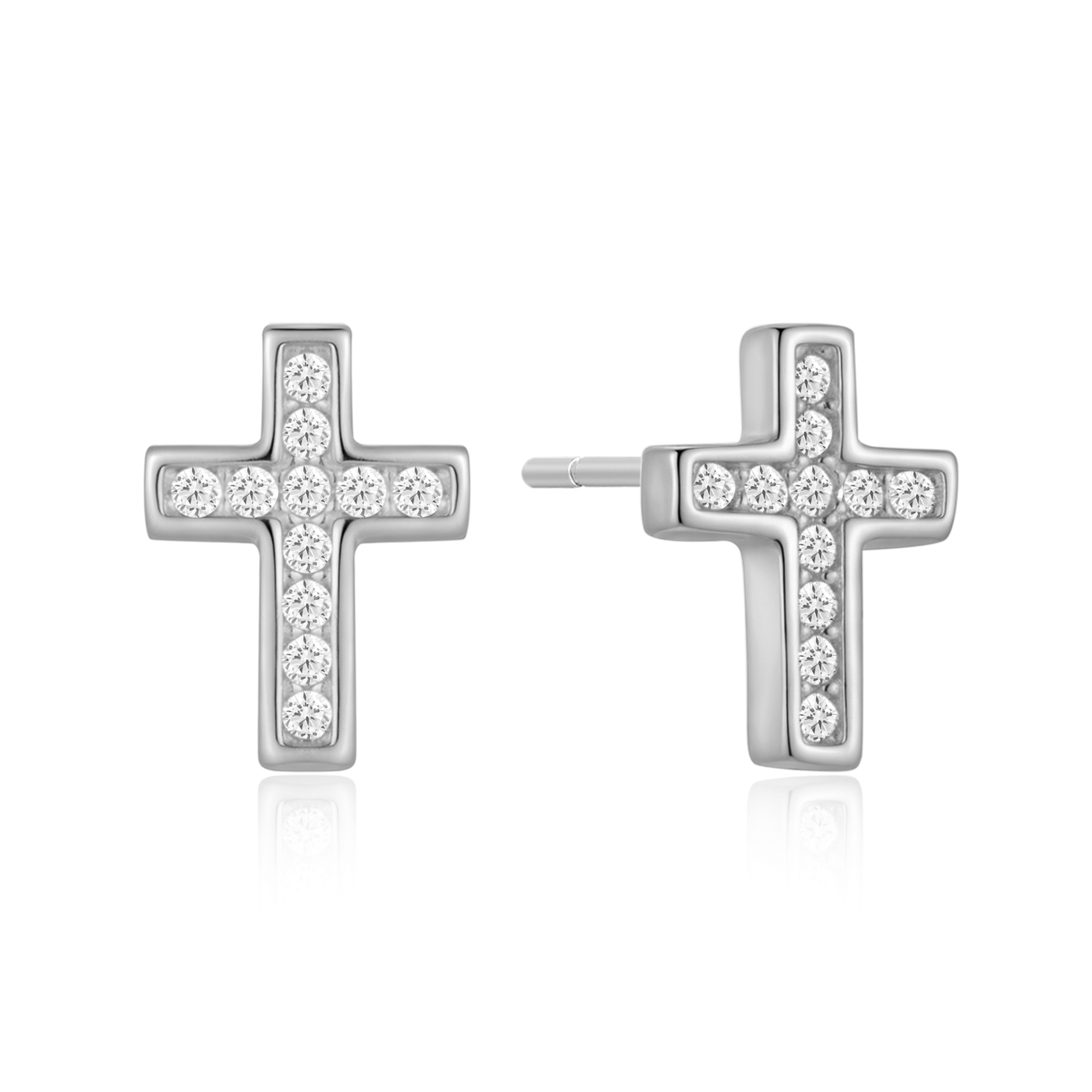 Sølv ørestikker rhodiner kors med syntetiske cubic zirconia.