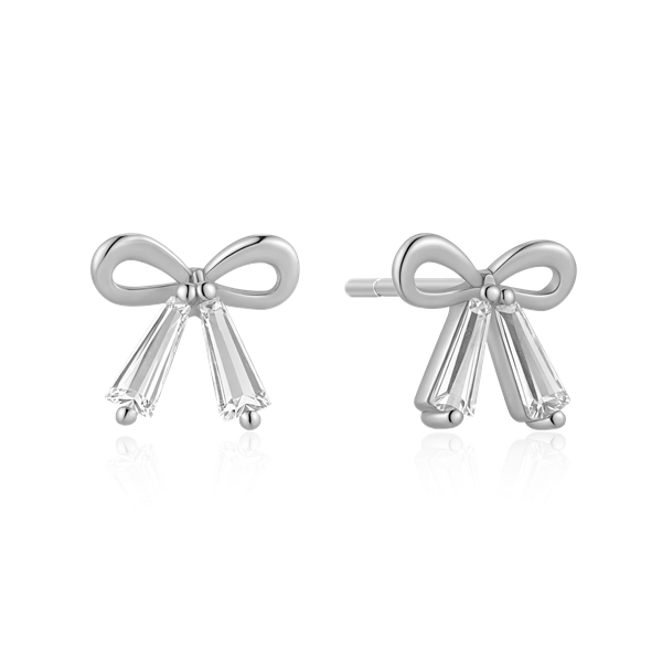Sølv ørestikker rhodineret sløjfe med syntetiske cubic zirconia.
