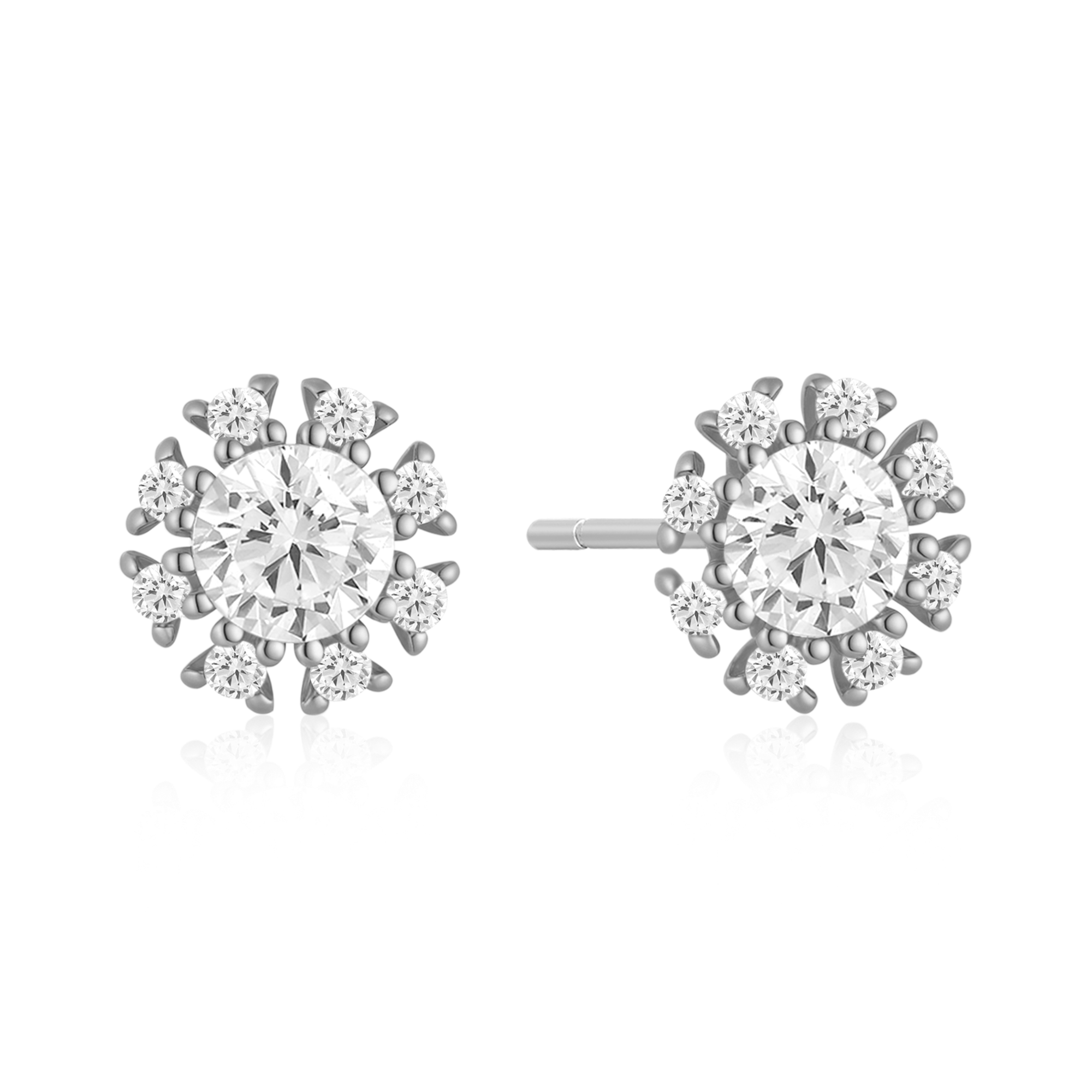 Sølv ørestikker rhodineret blomst med syntetiske cubic zirconia