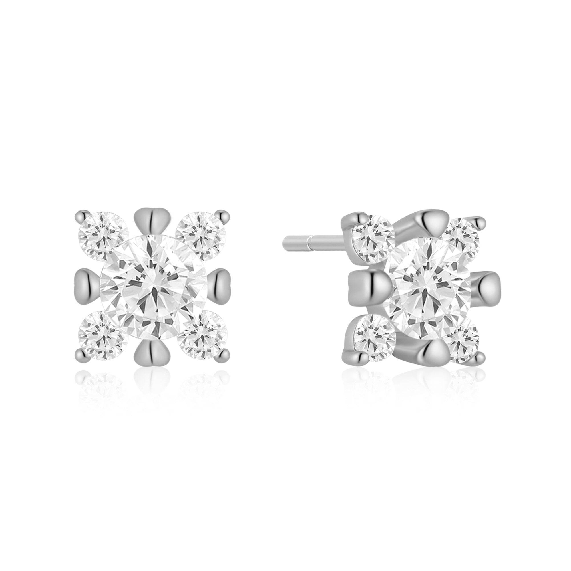 Sølv ørestikker rhodineret dobbelt bolmster med syntetiske cubic zirconia