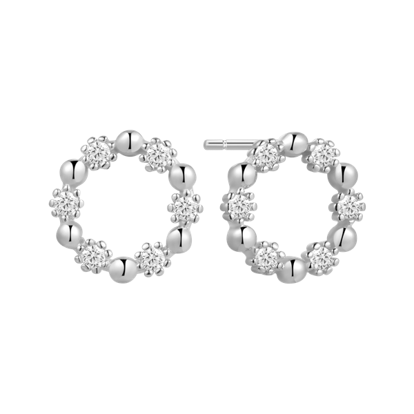 Sølv ørestikker rhodineret cirkel med syntetiske cubic zirconia rundt om kanten.