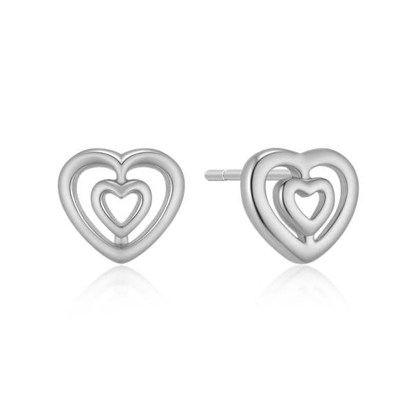 Sølv ørestikker rhodineret dobbelt hjerter.
