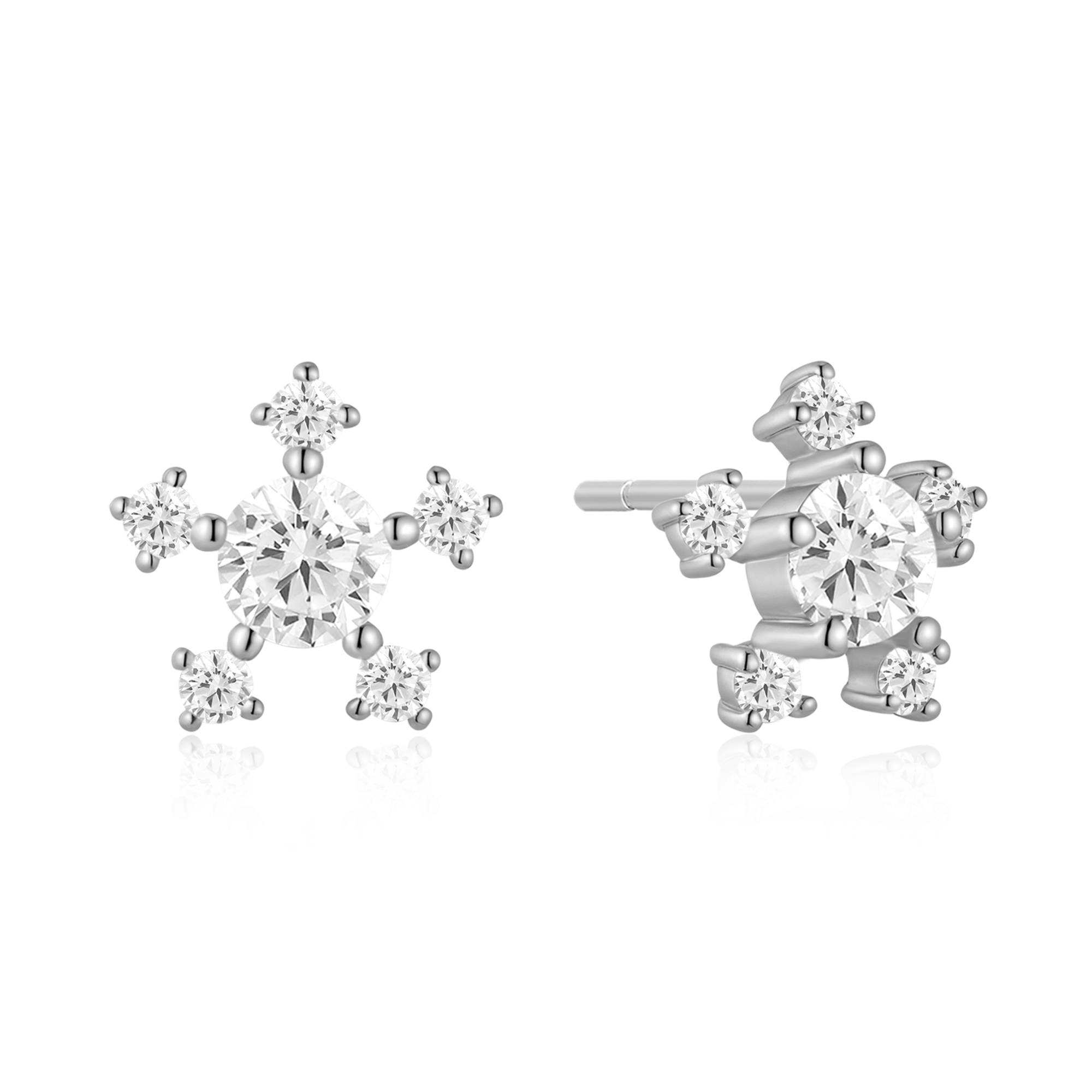 Sølv ørestikker rhodineret snefnug med syntetiske cubic zirconia.