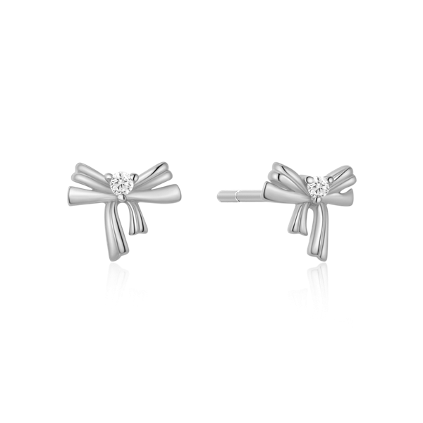 Sølv ørestikker rhodineret sløjfe med syntetisk cubic zirconia.
