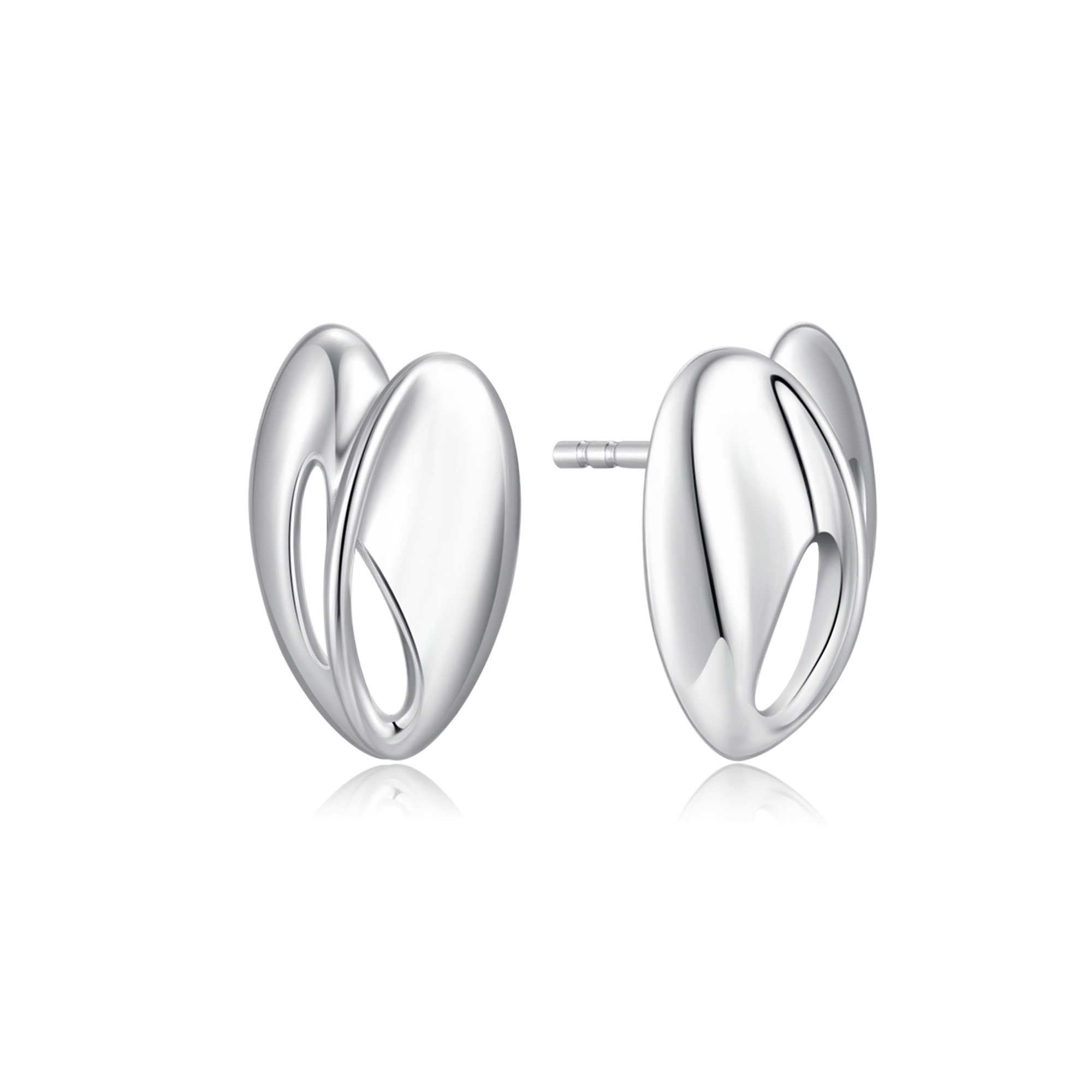 Sølv ørestikker rhodineret skæv flettet aflang oval.